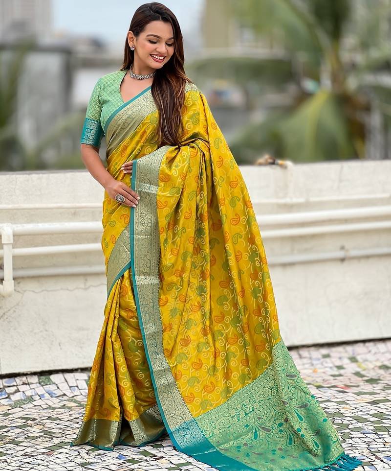 | Product Name | Mehendi Woven Self Design Silk Blend Patola Saree With Blouse | |