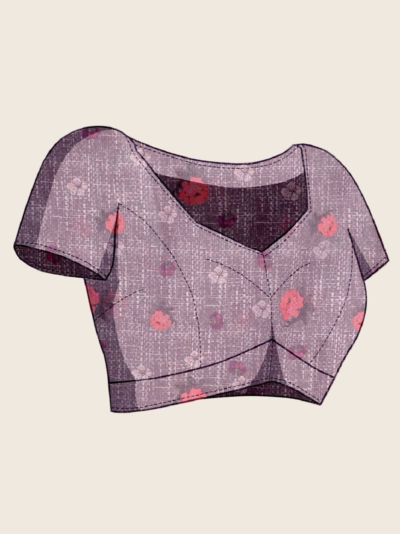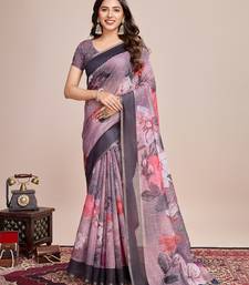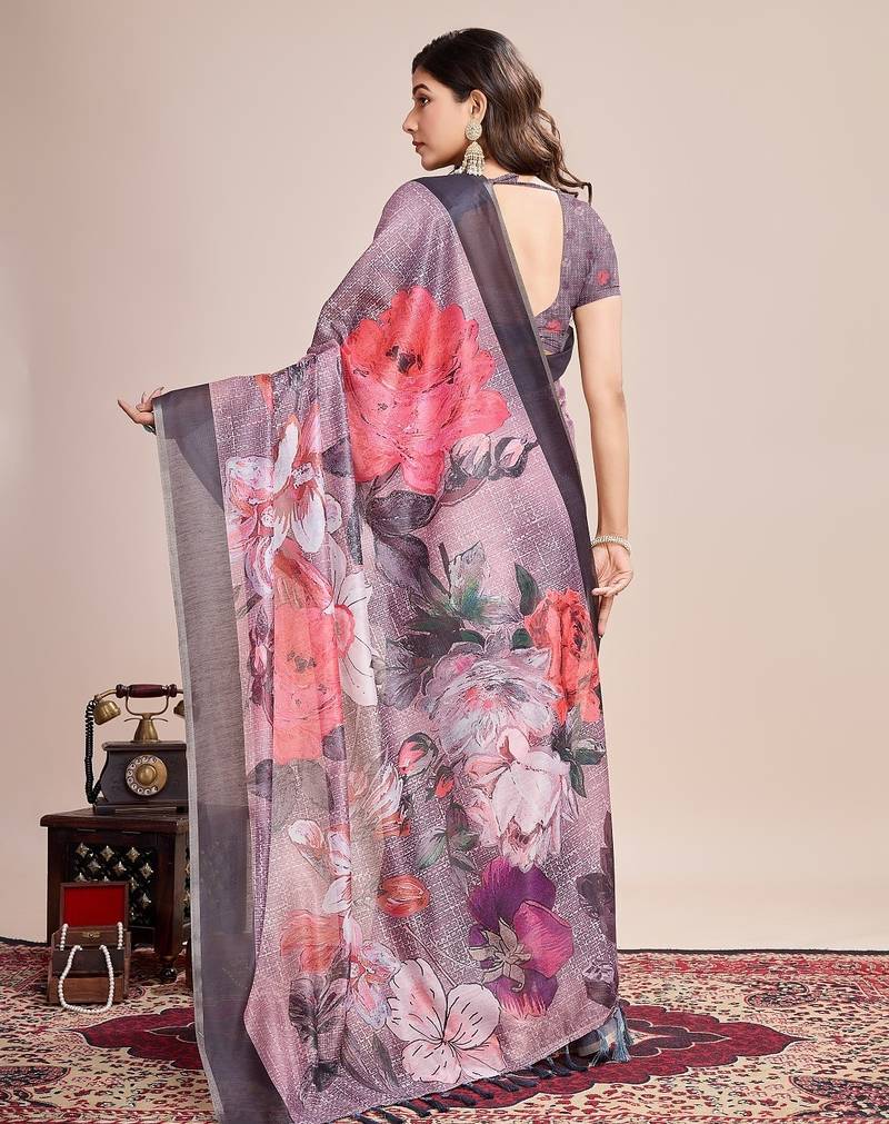 Multicolor printed floral print geometric print cotton linen bollywood saree with blouse