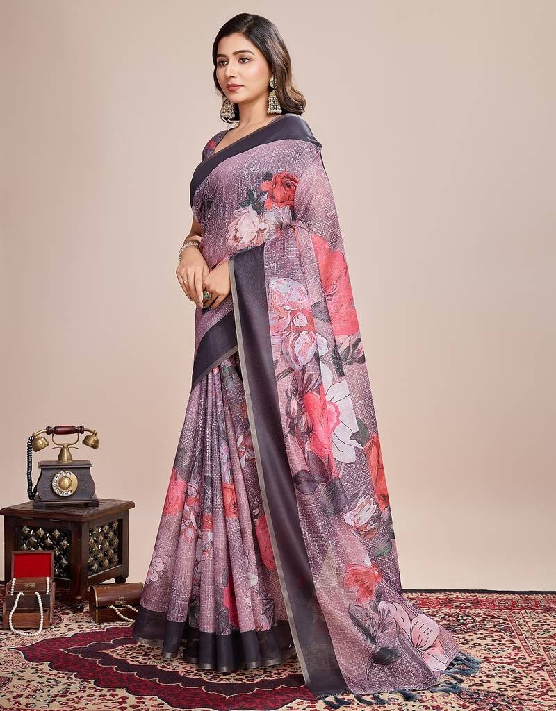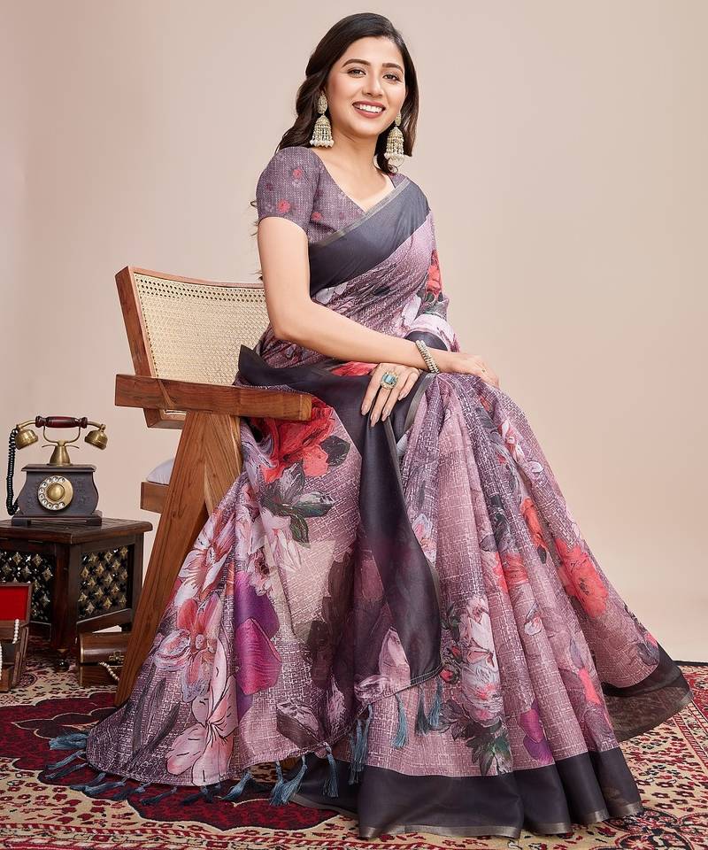 | Product Name | Multicolor Printed Floral Print Geometric Print Cotton Linen Bollywood Saree With Blouse | |
