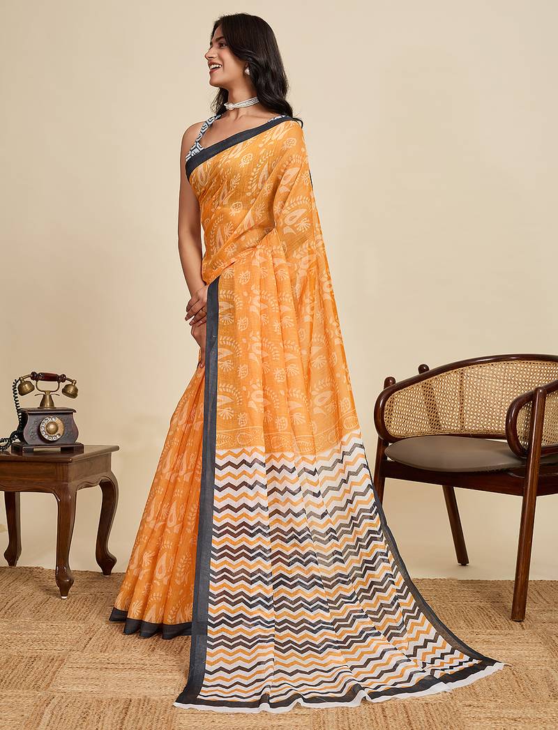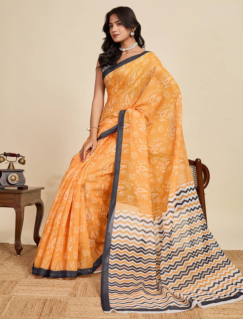 | Product Name | Mustard Printed Linan Kalamkari Saree With Blouse | |