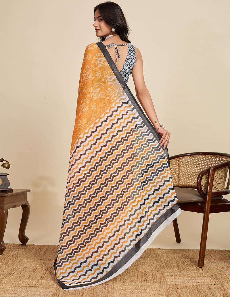 Mustard printed linan kalamkari saree with blouse