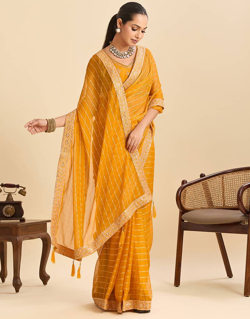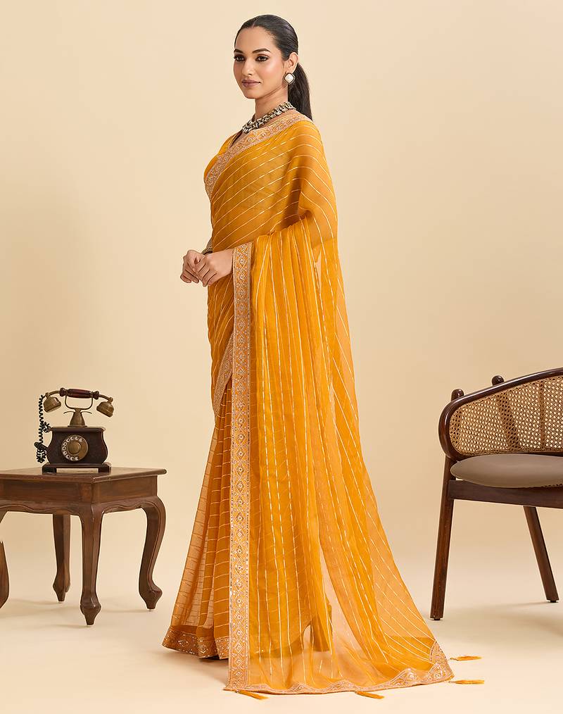 | Product Name | Mustard Striped, Sequence Georgette Bollywood Saree With Blouse | |