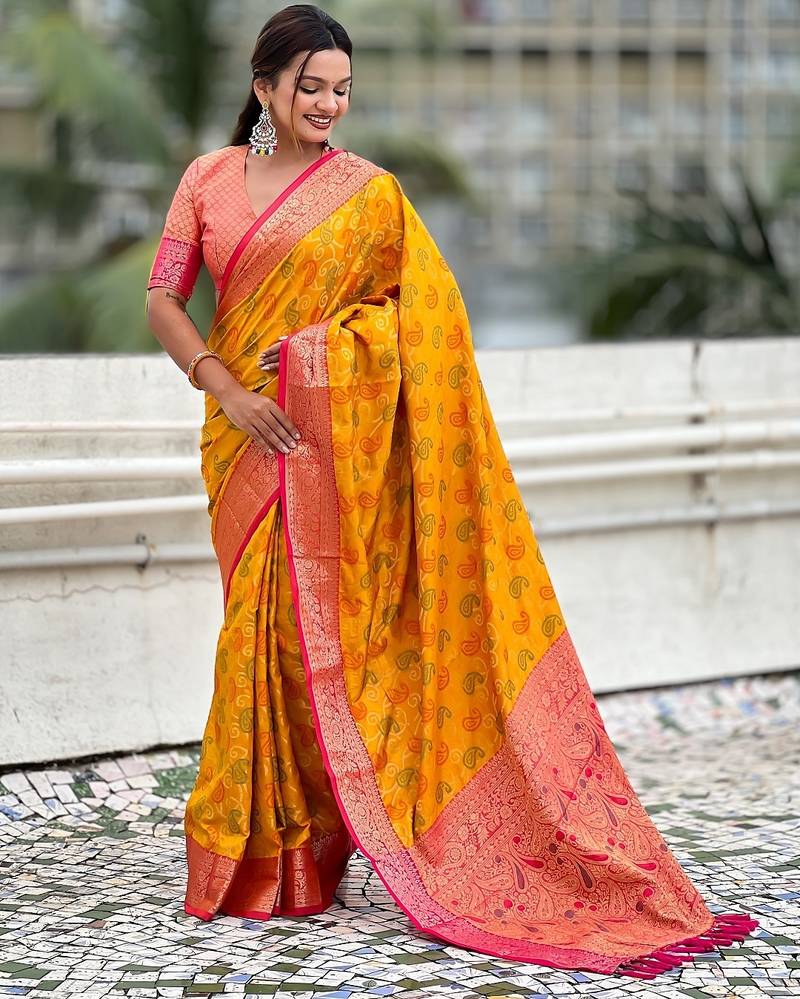 | Product Name | Mustard Woven Self Design Silk Blend Patola Saree With Blouse | |