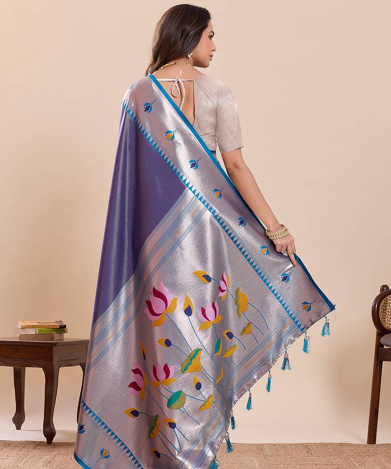 | Product Name | Navy Blue Floral Print Pure Soft Silk Banarasi Saree With Blouse | |