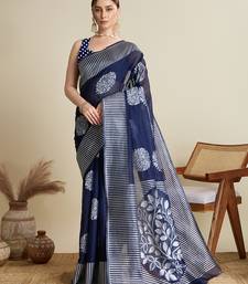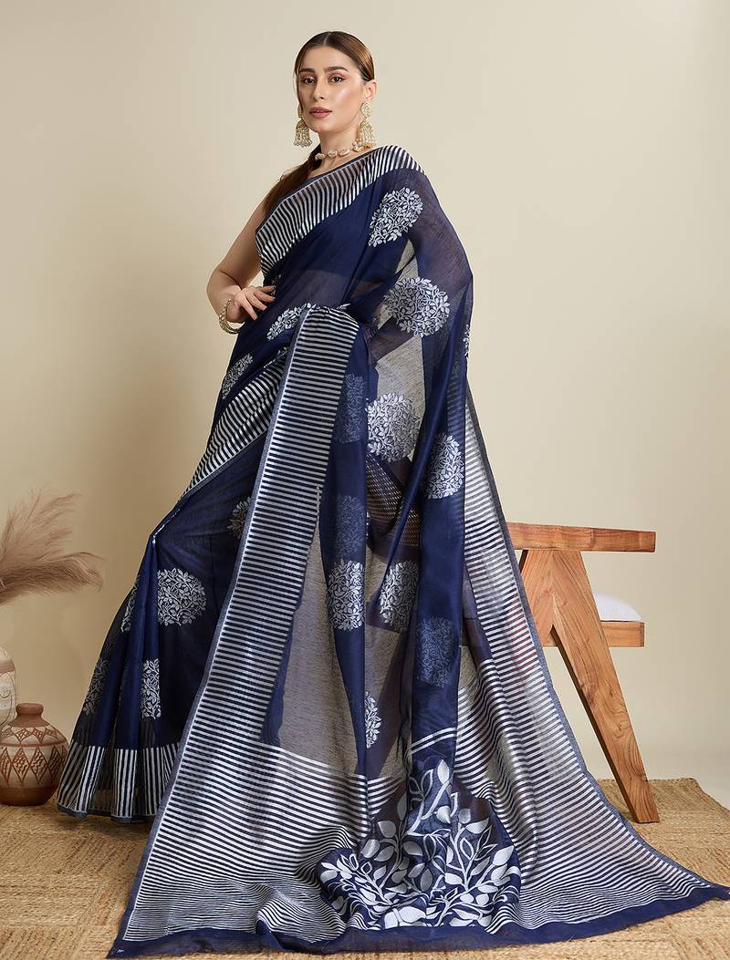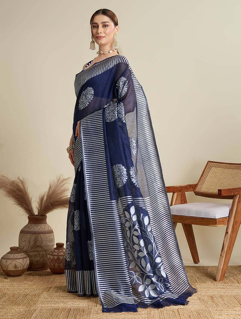 | Product Name | Navy Blue Floral Print Silk Blend Bollywood Saree With Blouse | |