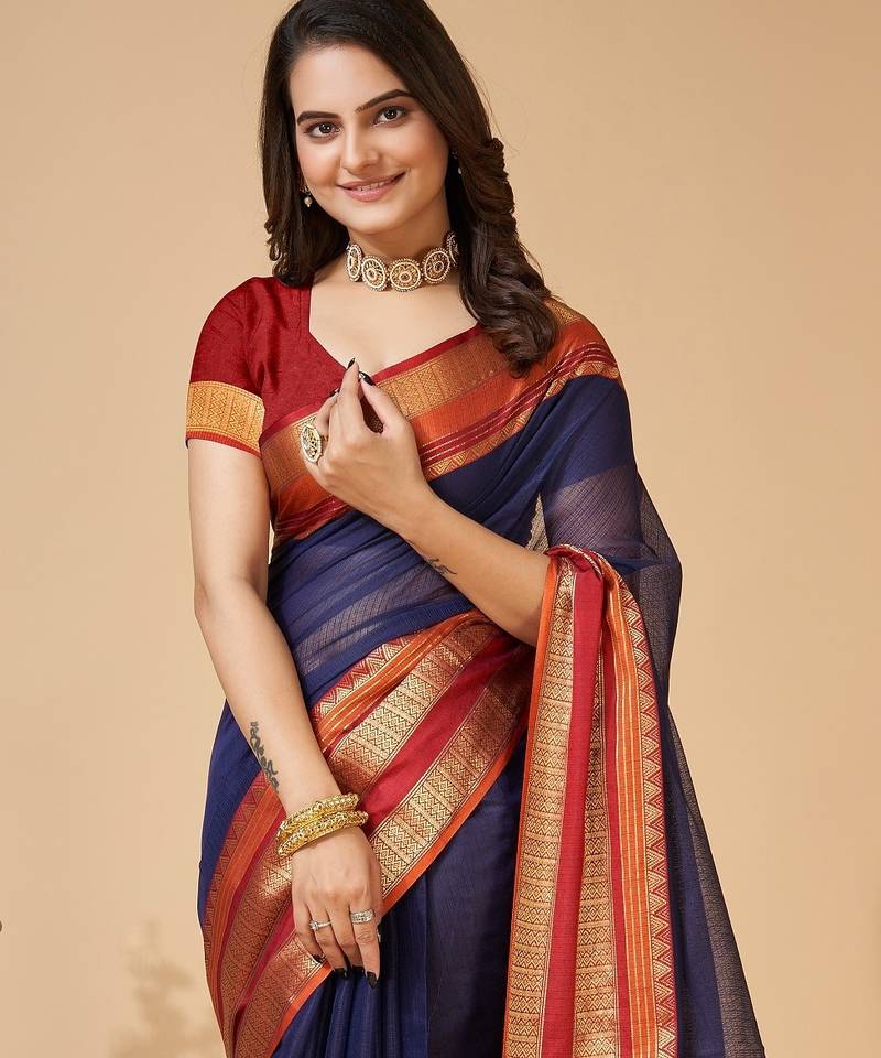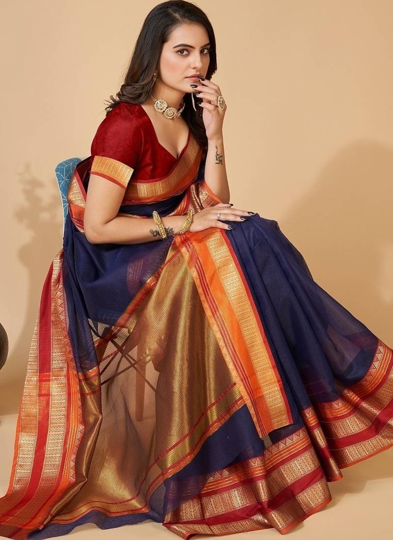 Saree : Color- Navy Blue / Fabric- Cotton Silk