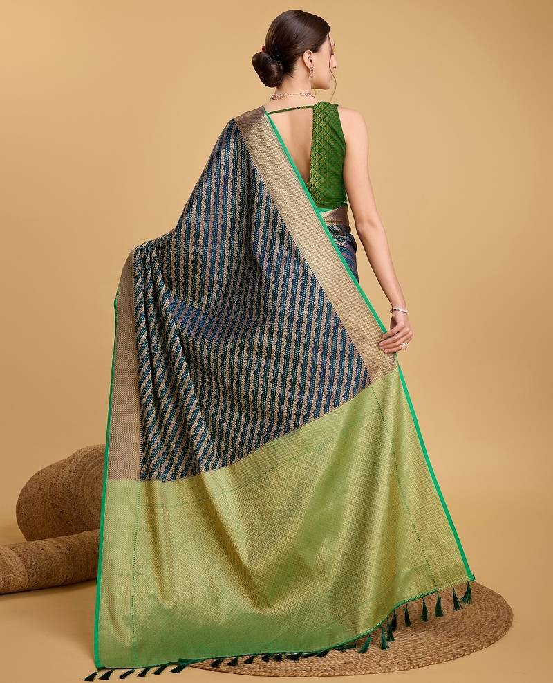 | Product Name | Navy Blue Woven Self Design Embellished Pure Silk Banarasi Saree With Blouse | |
