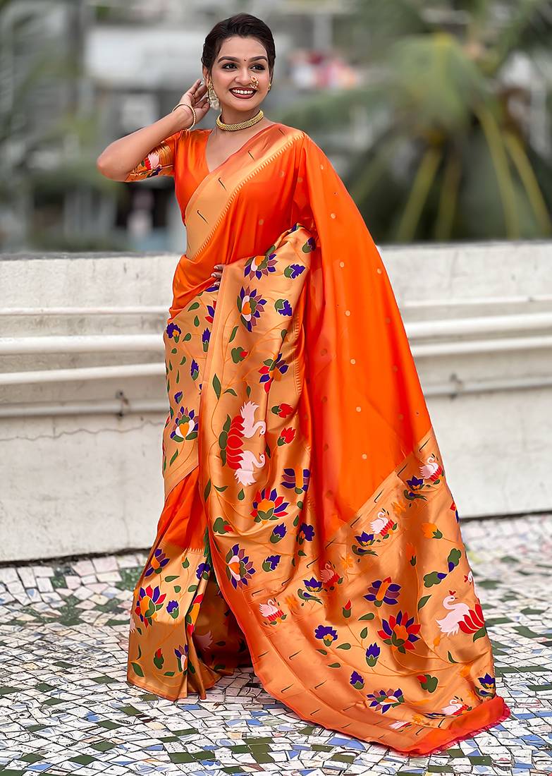 | Product Name | Orange Woven Self Design Pure Silk Paithani Saree With Blouse | |