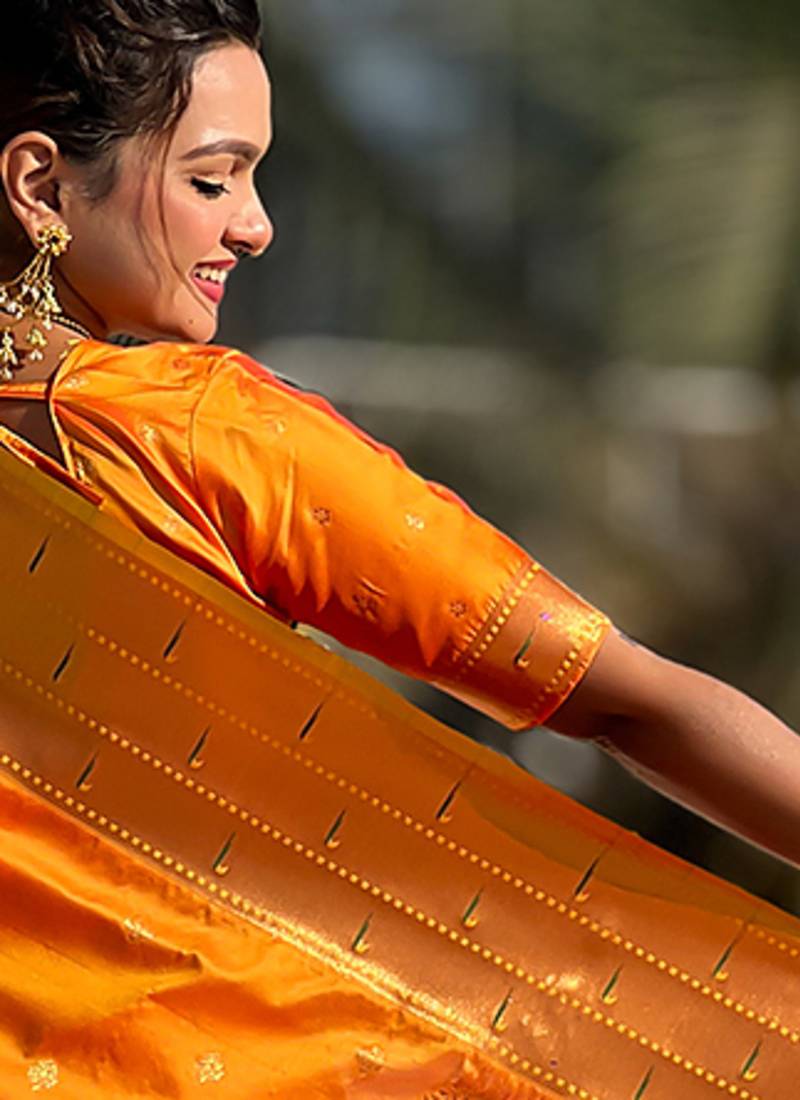 | Product Name | Orange Woven Self Design Pure Silk Paithani Saree With Blouse | |