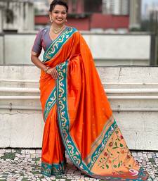 Product Name Orange Woven Self Design Pure Silk Paithani Saree With Blouse