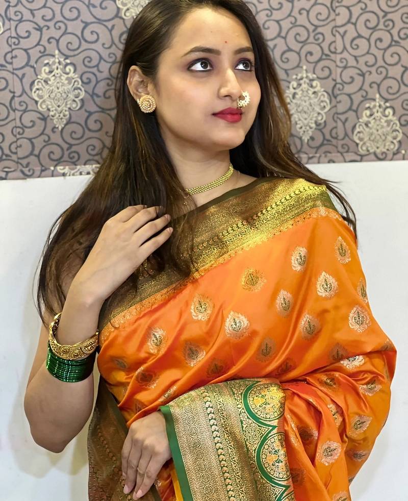 | Product Name | Orange Woven Self Design Silk Blend Paithani Saree With Blouse | |