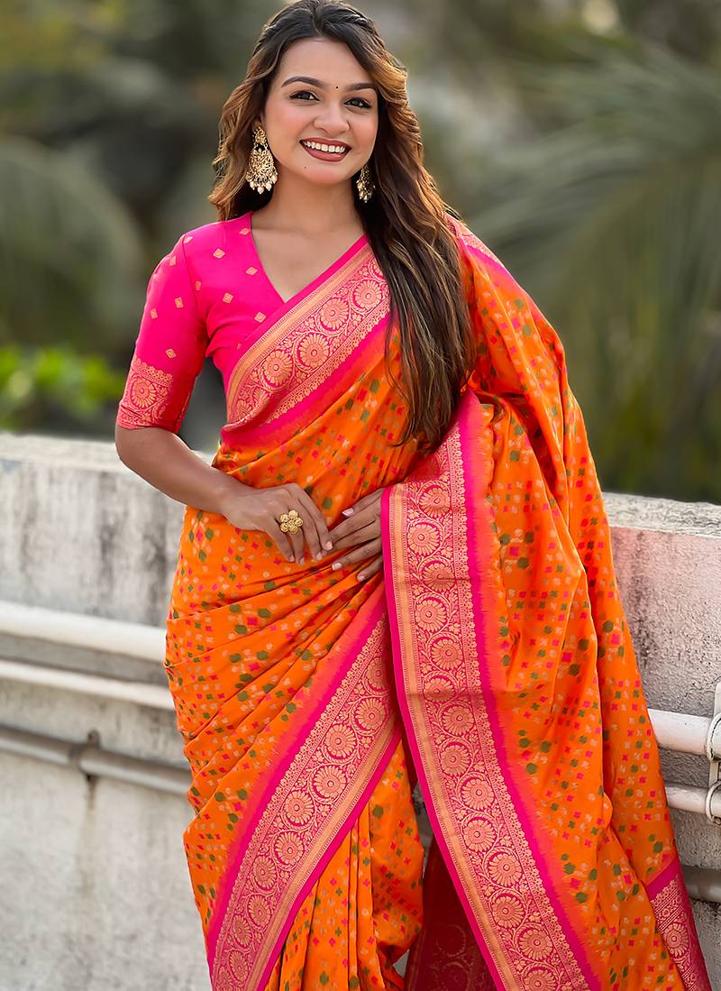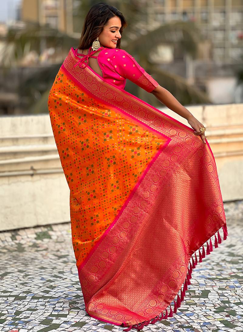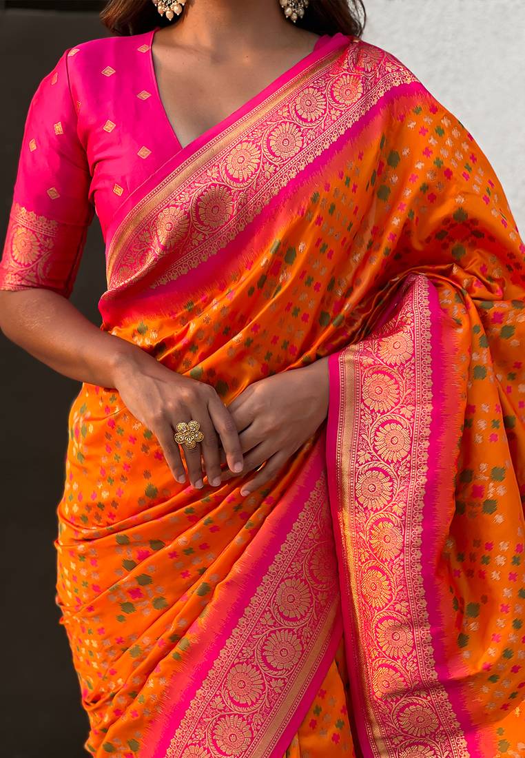 | Product Name | Orange Woven Self Design Silk Blend Patola Saree With Blouse | |
