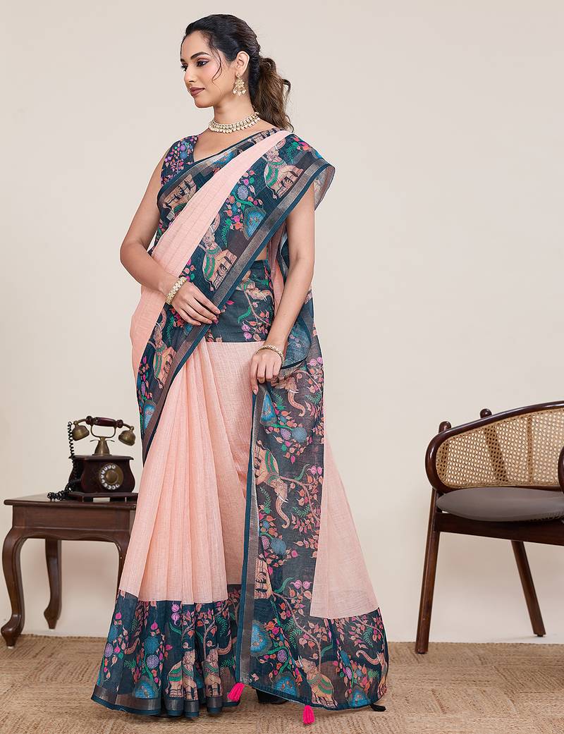 | Product Name | Peach Printed Linan Bollywood Saree With Blouse | |