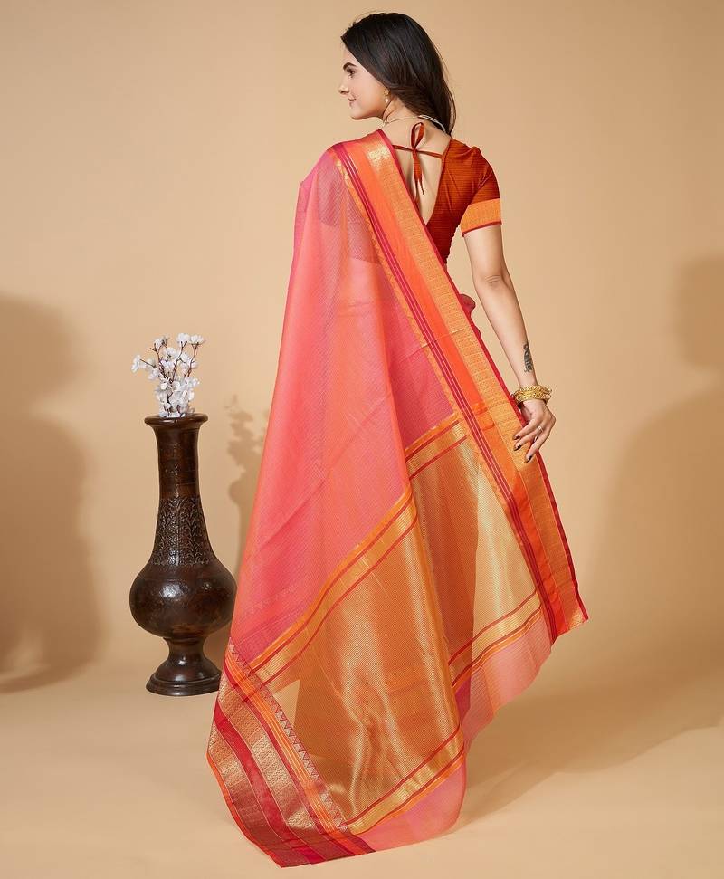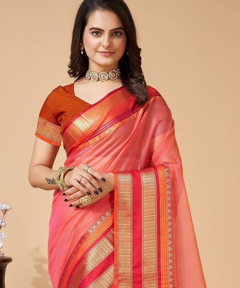 Product Name Peach Woven Self Design Cotton Silk Kota Doria Saree With Blouse