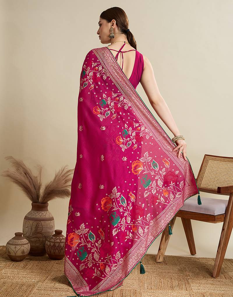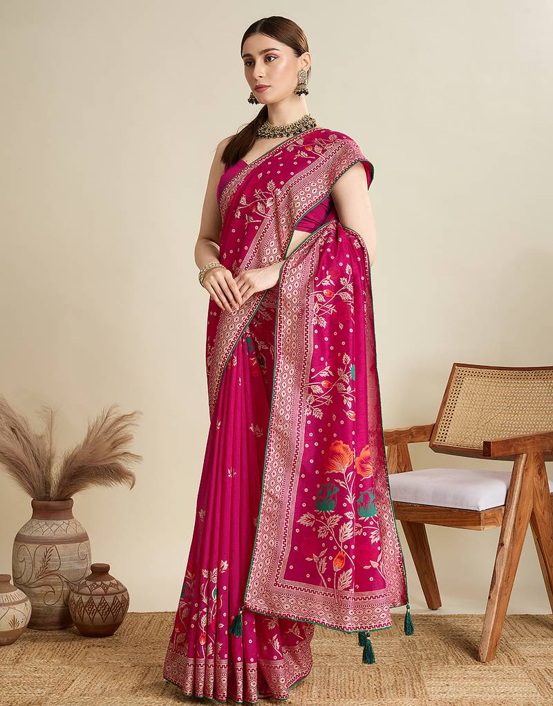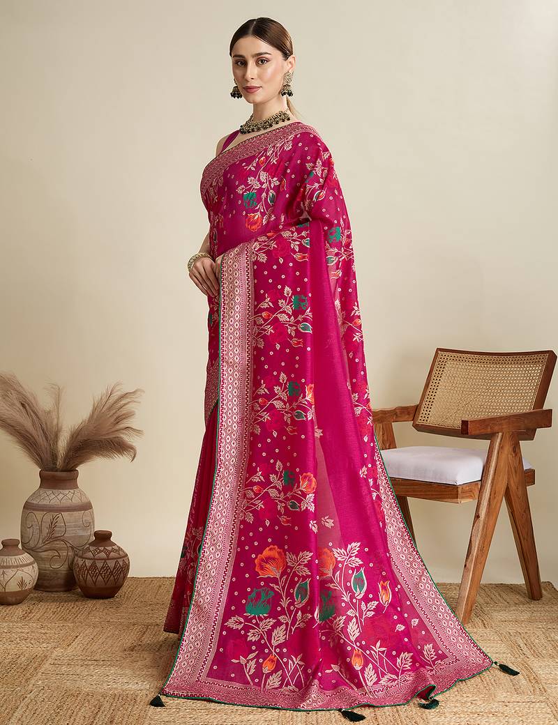 | Product Name | Pink Printed Floral Print Cotton Silk Bollywood Saree With Blouse | |