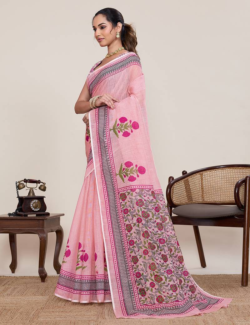 | Product Name | Pink Printed Linan Bollywood Saree With Blouse | |