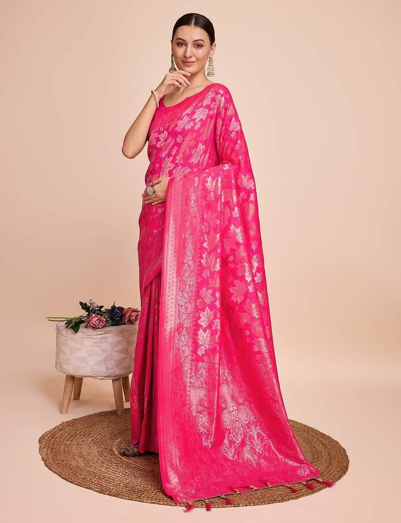 | Product Name | Pink Woven Embellished Pure Silk Banarasi Saree With Blouse | |