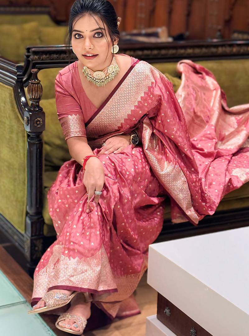 | Product Name | Pink Woven Self Design Antique Silk Banarasi Saree With Blouse | |