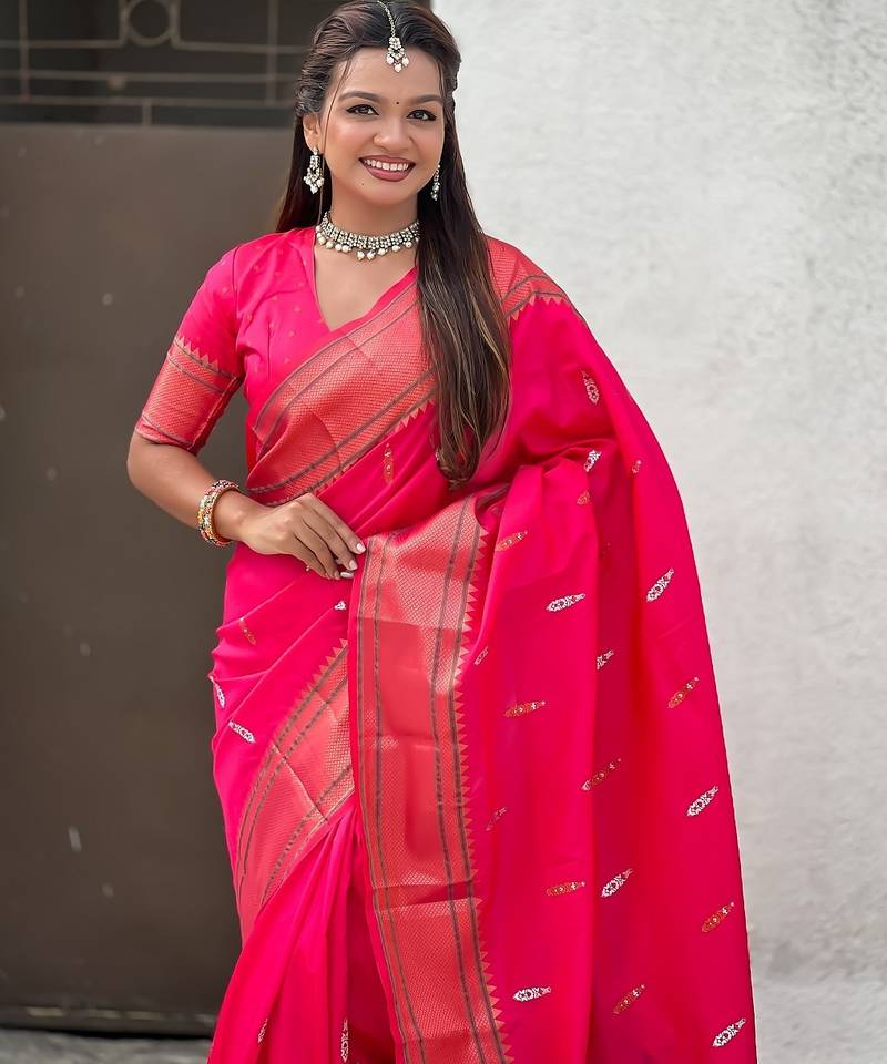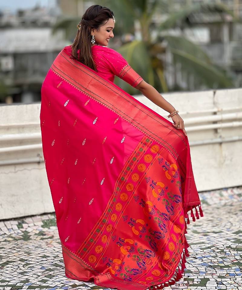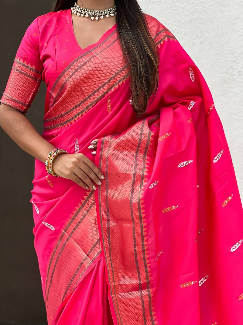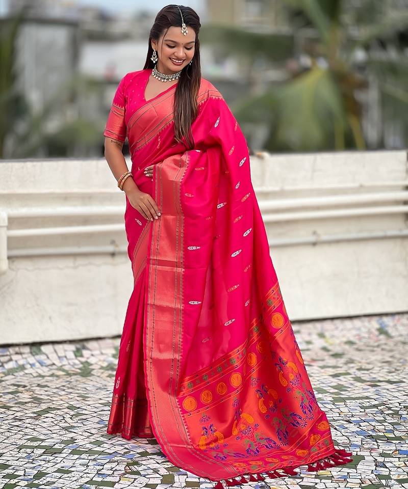 | Product Name | Pink Woven Self Design Pure Silk Paithani Saree With Blouse | |