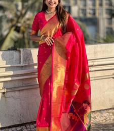 Pink woven self design pure silk paithani saree with blouse