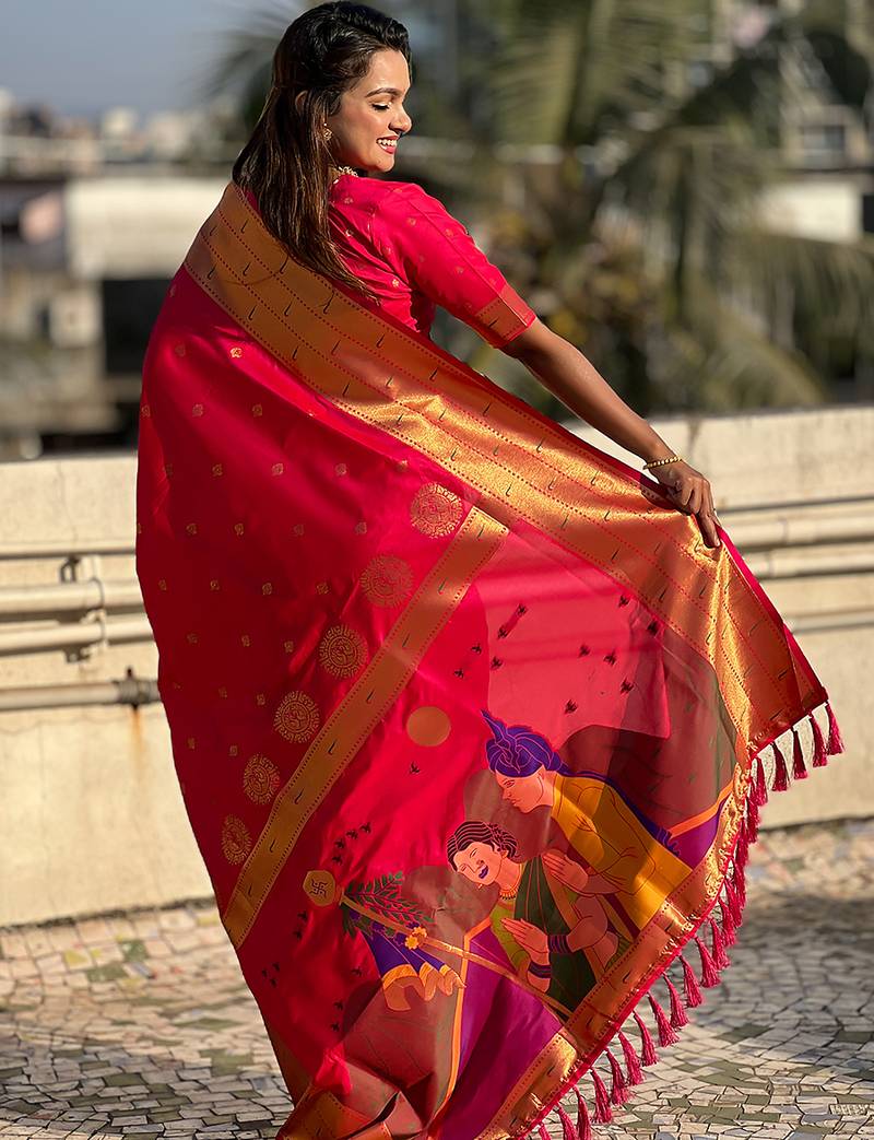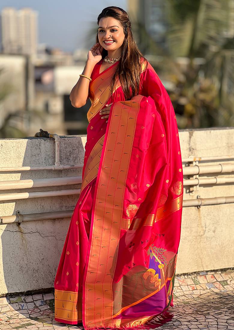 | Product Name | Pink Woven Self Design Pure Silk Paithani Saree With Blouse | |