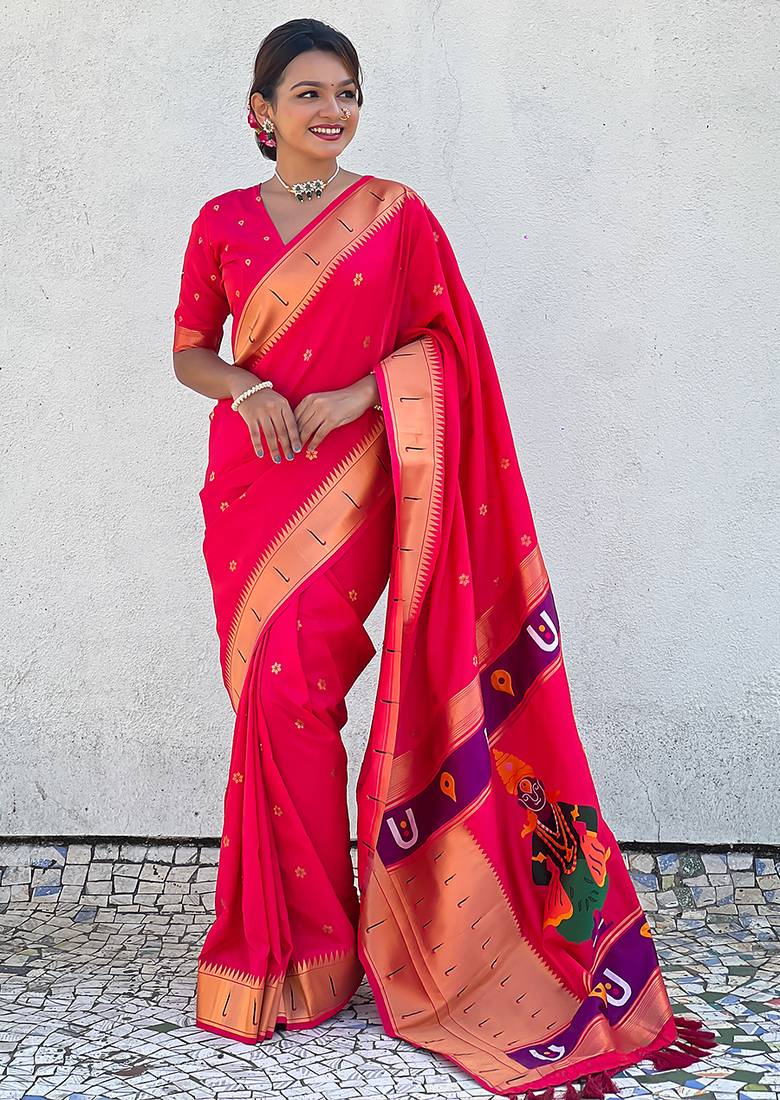 | Product Name | Pink Woven Self Design Pure Silk Paithani Saree With Blouse | |