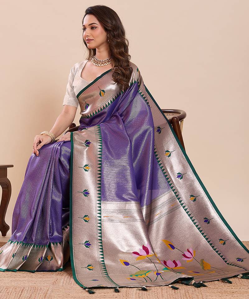 | • | Saree | : | Color- Purple / Fabric- Pure Silk |