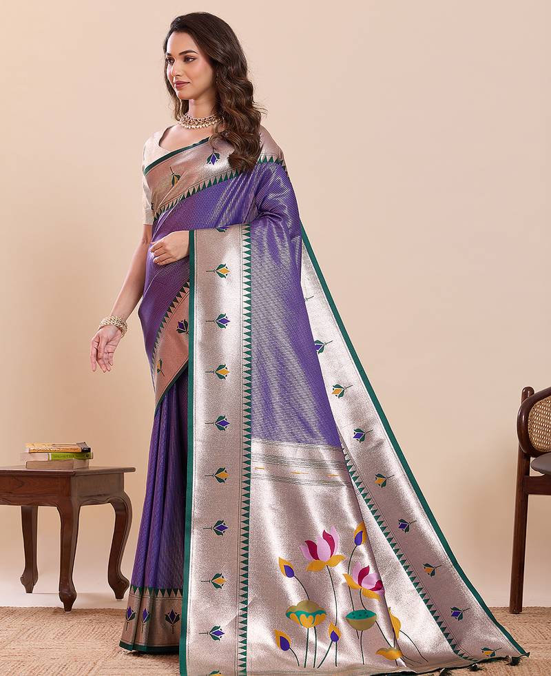 | Product Name | Purple Floral Print Pure Soft Silk Banarasi Saree With Blouse | |
