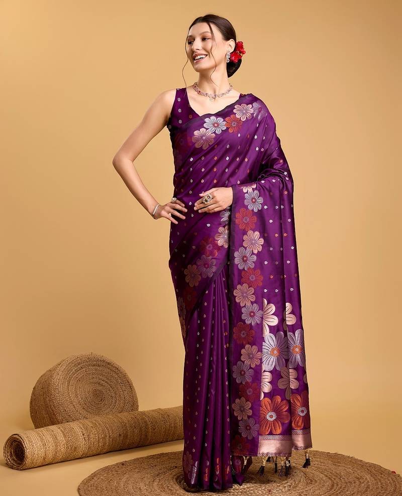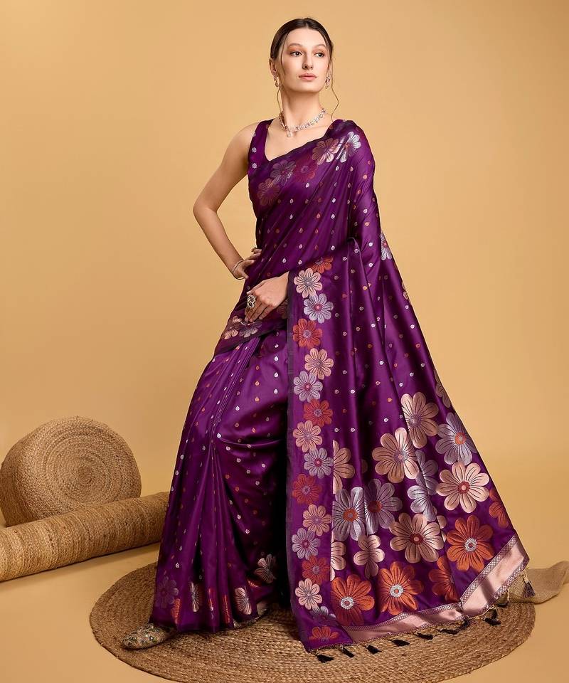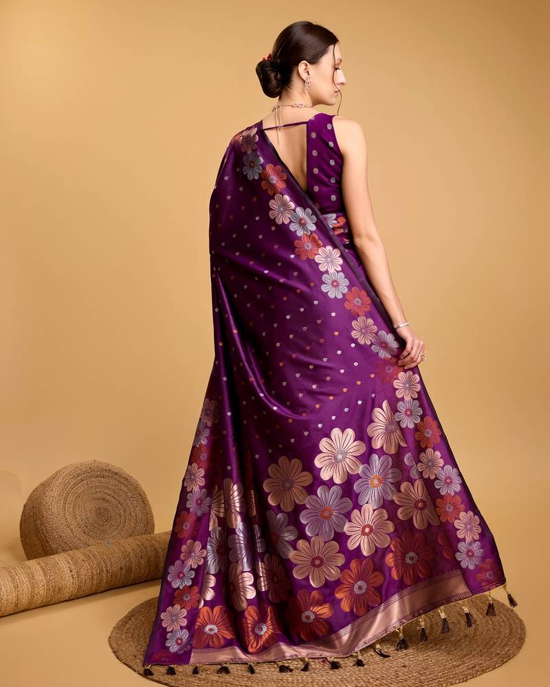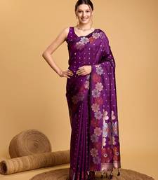 Purple woven embellished pure silk banarasi saree with blouse