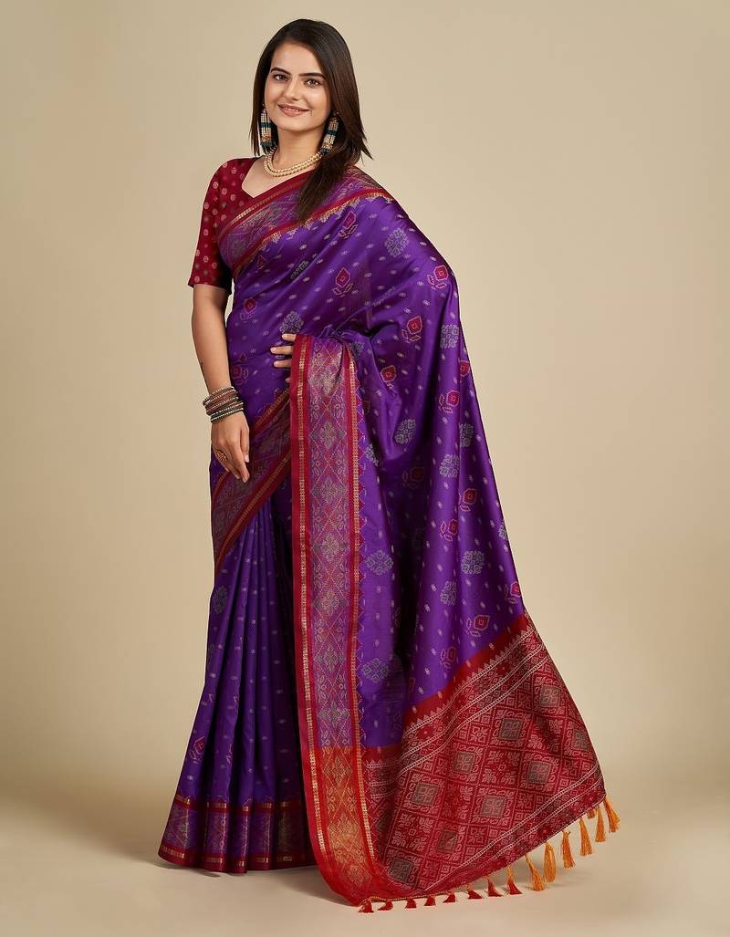 | Product Name | Purple Woven Self Design Embellished Pure Silk Patola Saree With Blouse | |