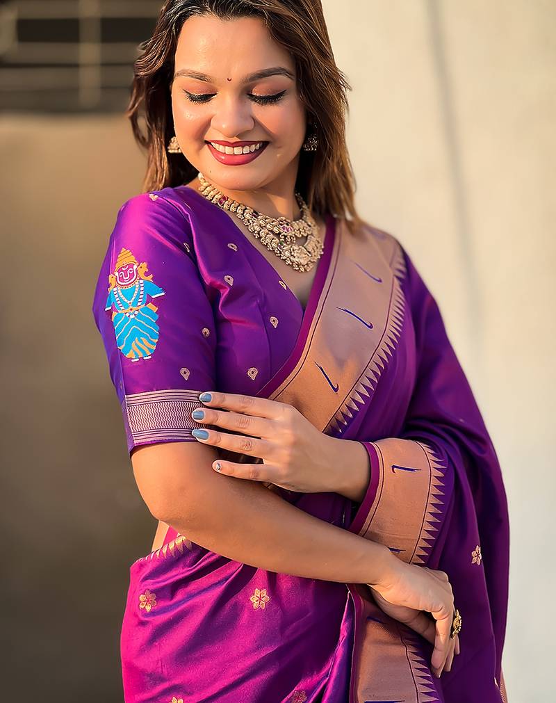 | Product Name | Purple Woven Self Design Pure Silk Paithani Saree With Blouse | |