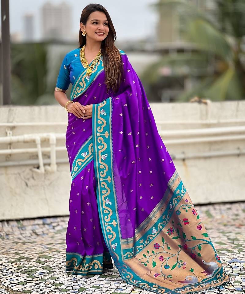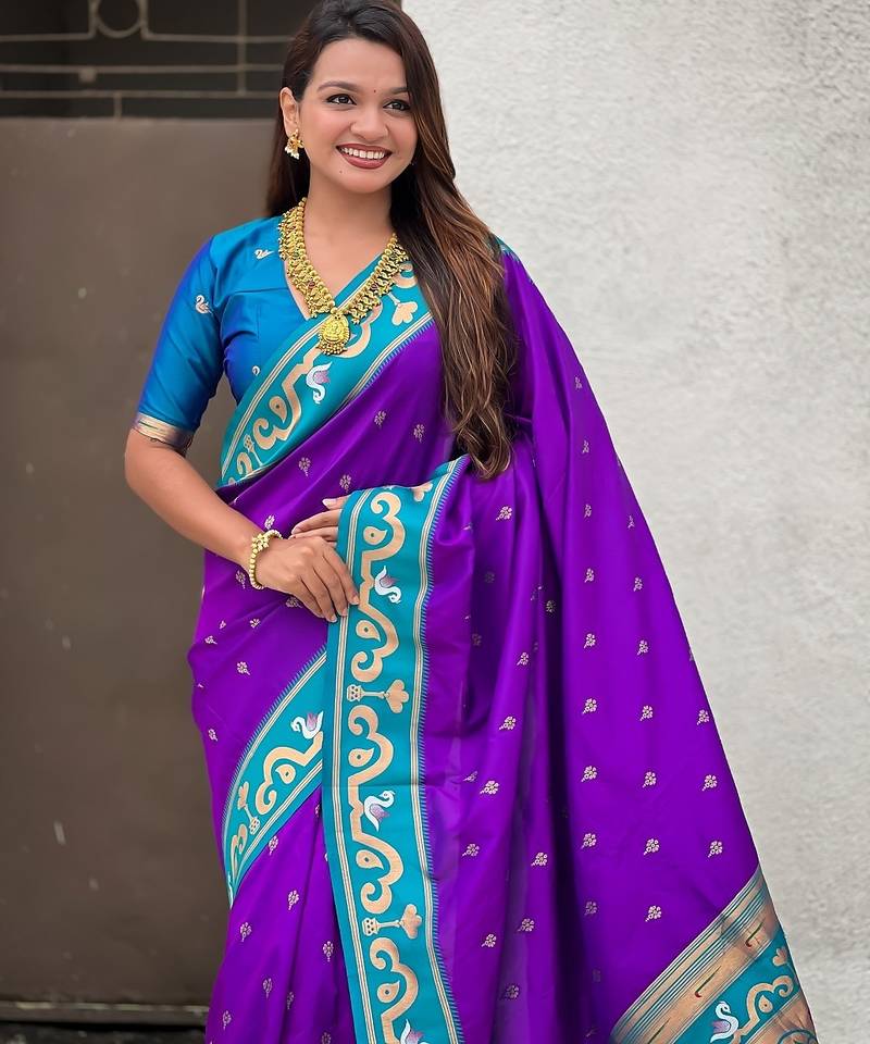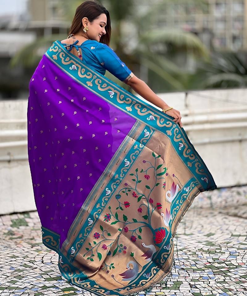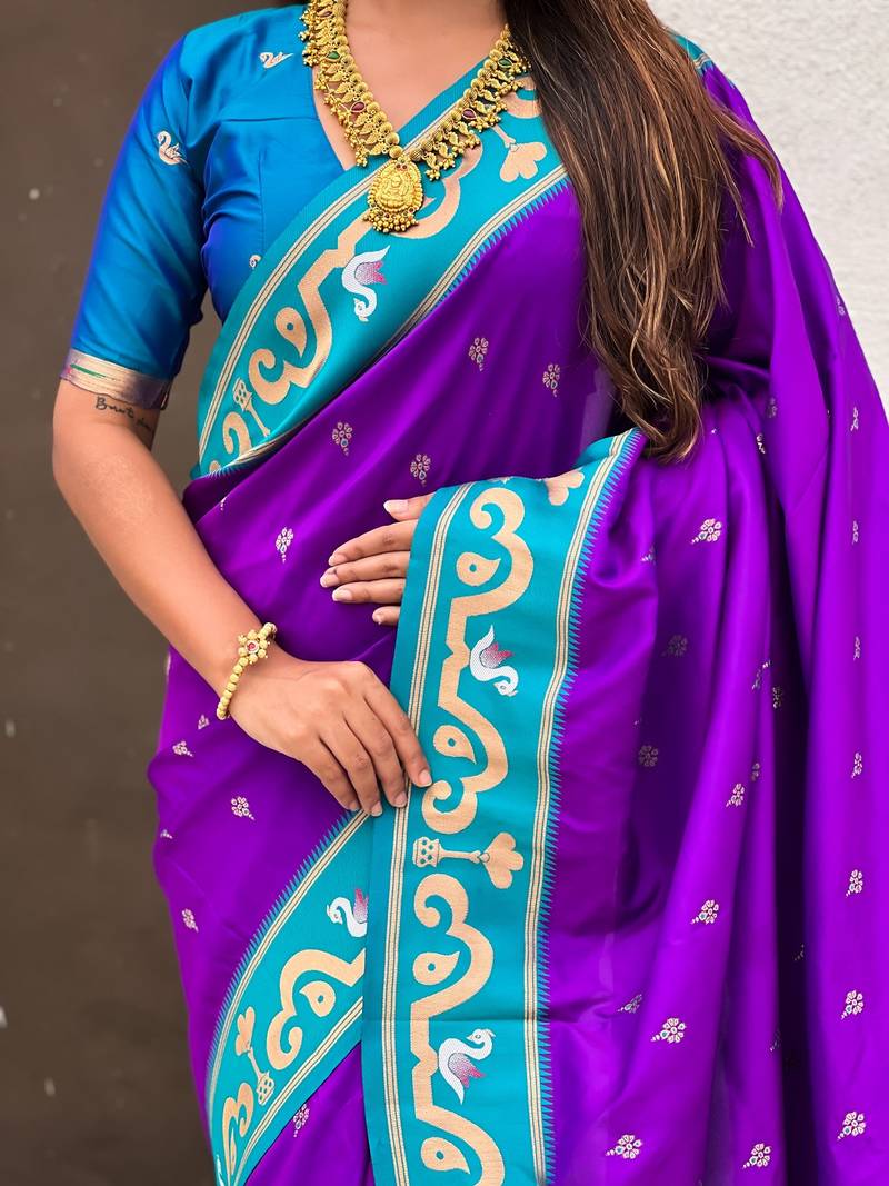 Product Name Purple Woven Self Design Pure Silk Paithani Saree With Blouse