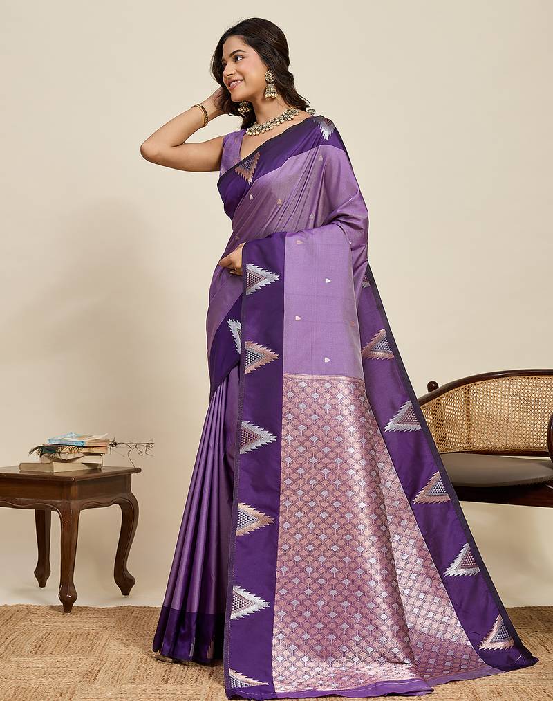 Purple zari woven soft silk banarasi saree with blouse