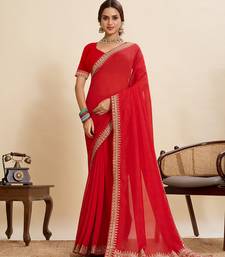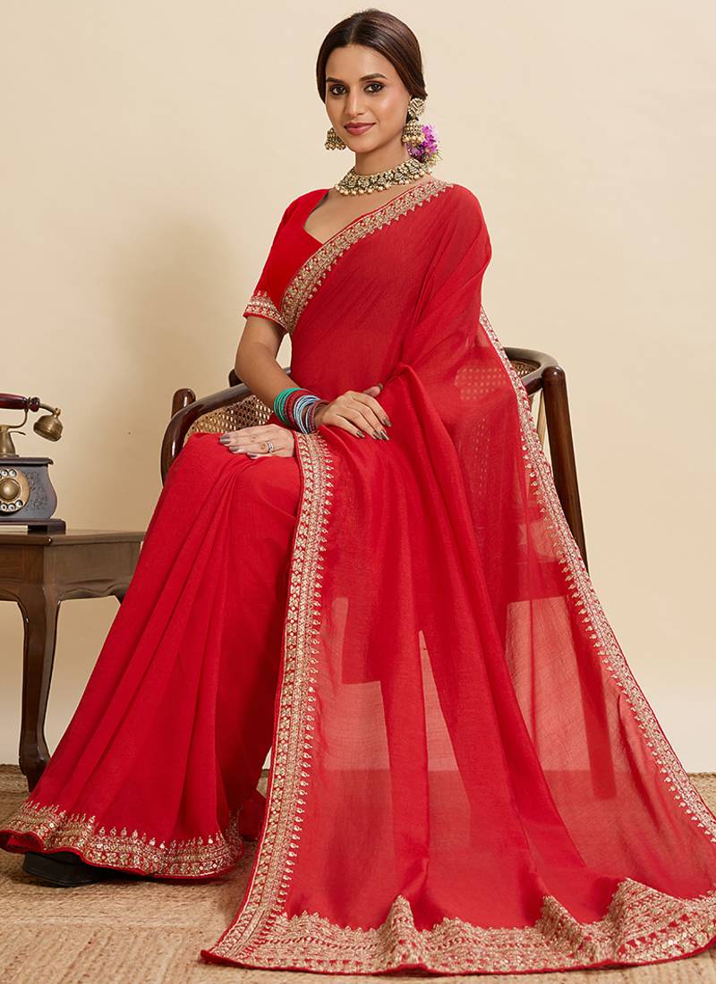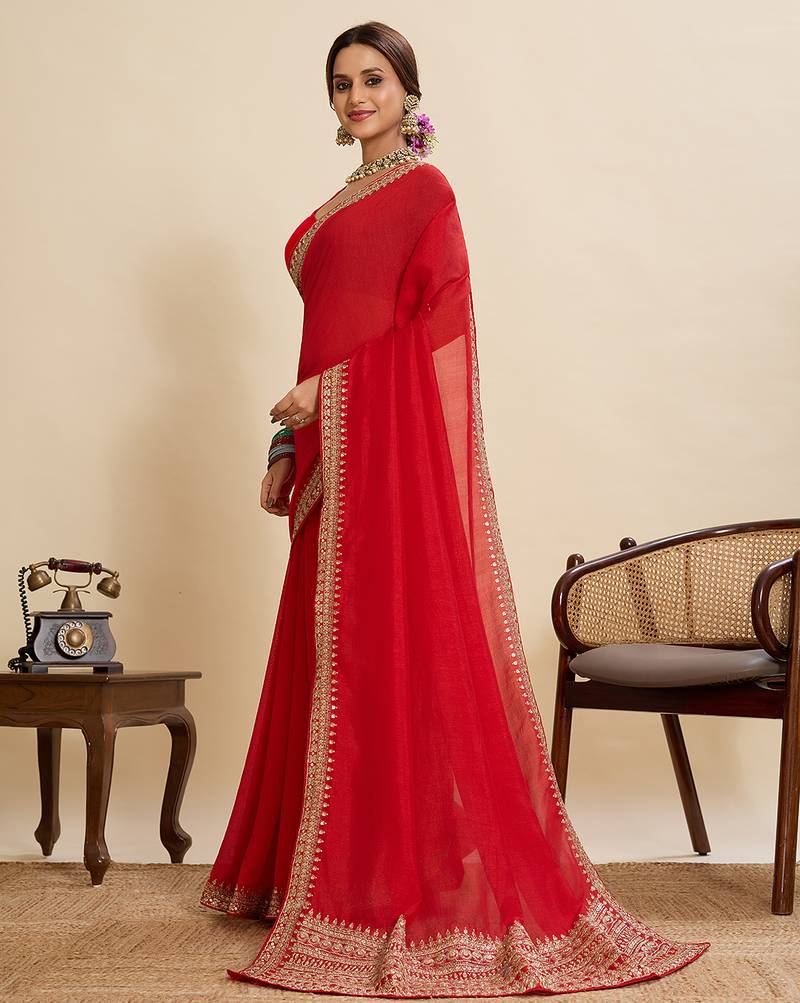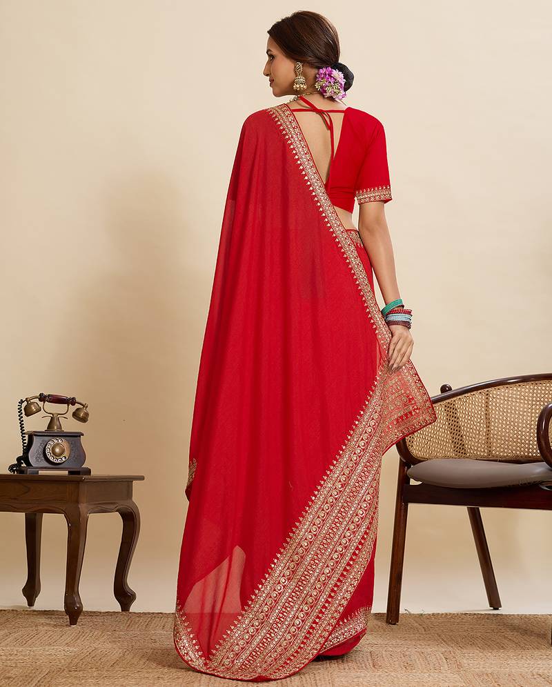| Product Name | Red Embroidered Vichitra Soft Silk Bollywood Saree With Blouse | |
