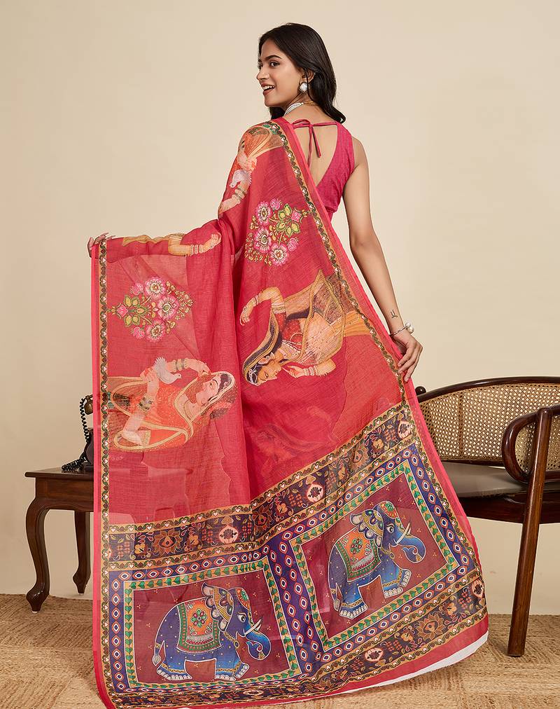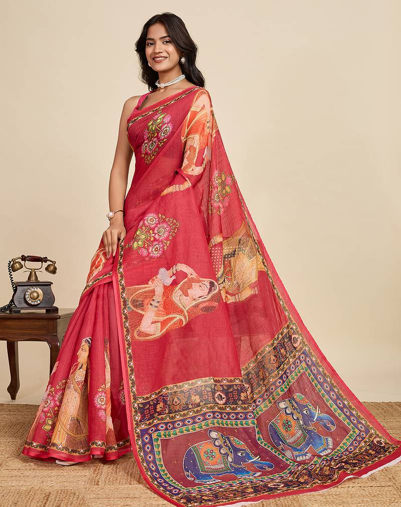 | Product Name | Red Printed Linan Kalamkari Saree With Blouse | |