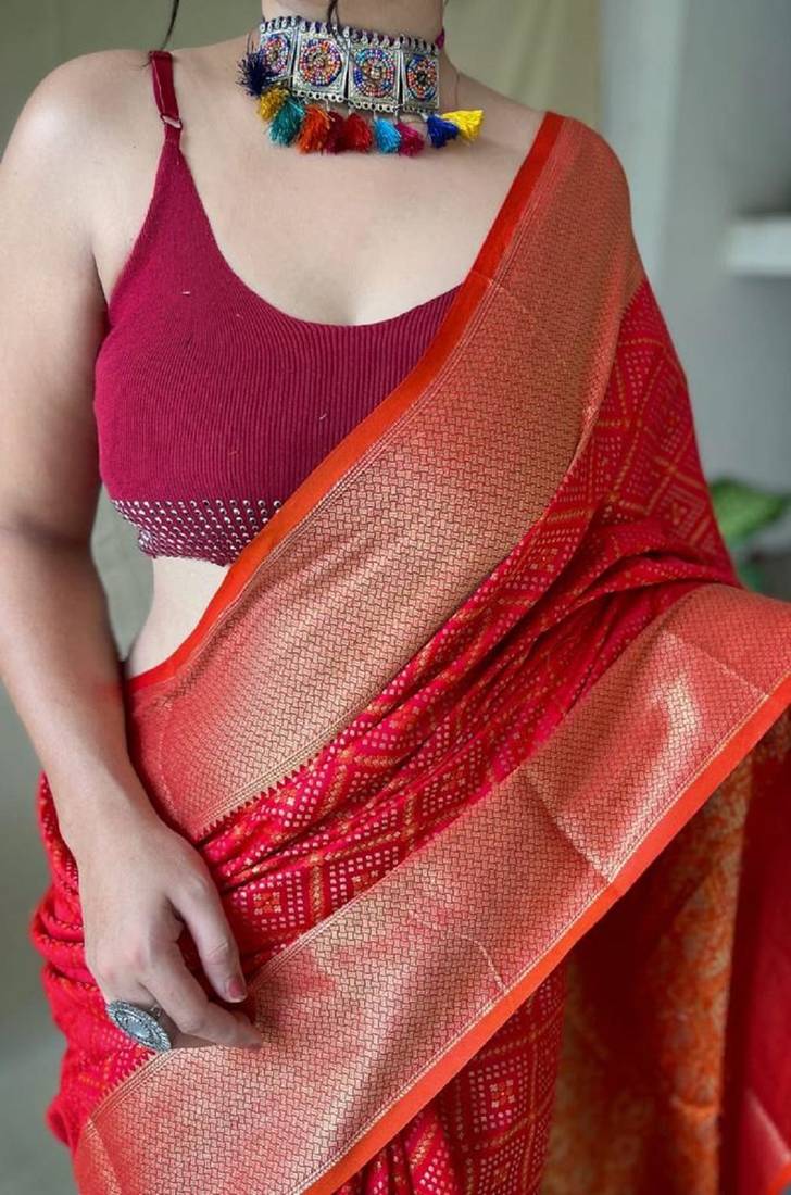 | Product Name | Red Woven Self Design Embellished Pure Silk Patola Saree With Blouse | |
