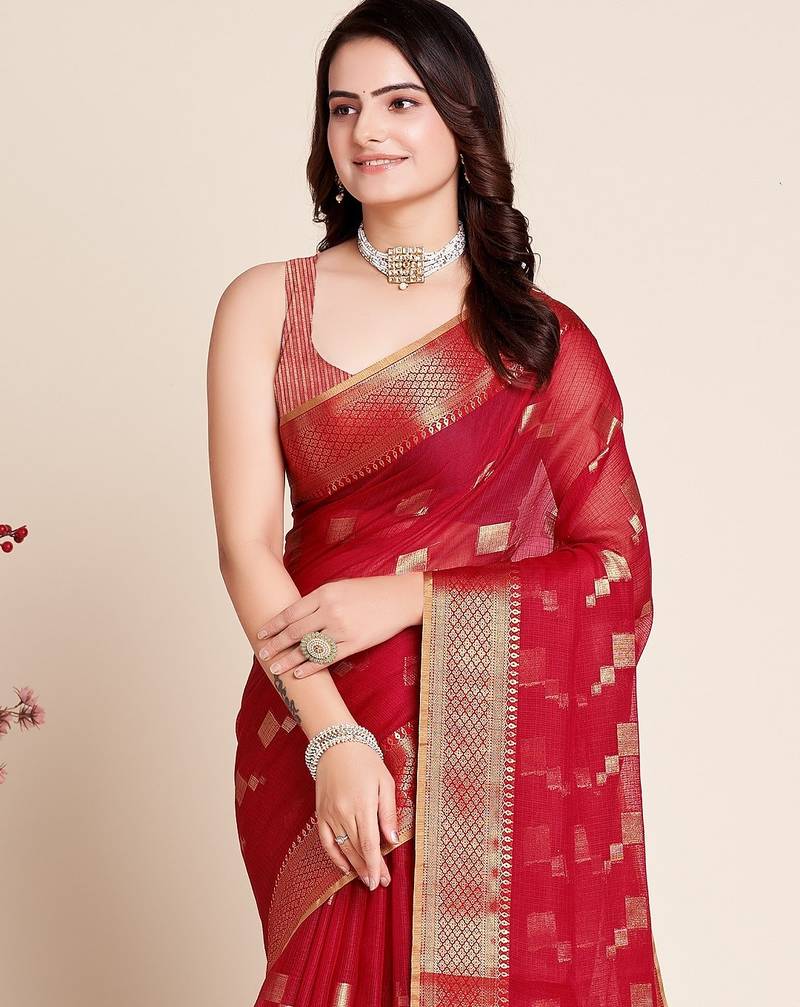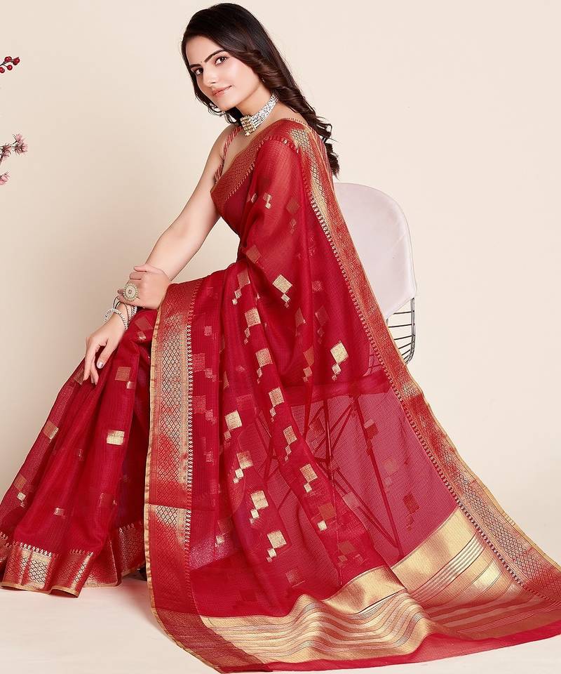 | Product Name | Red Woven Self Design Kota Doria Kota Doria Saree With Blouse | |