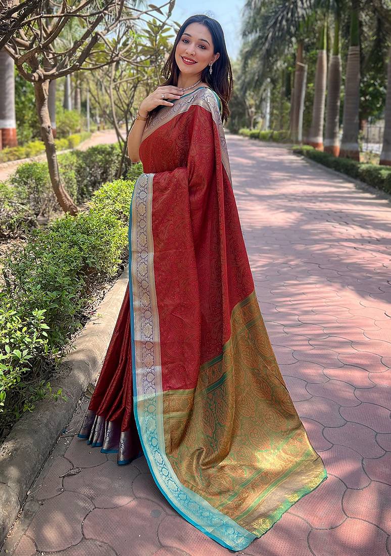 | Product Name | Red Woven Self Design Pashmina Silk Saree With Blouse | |