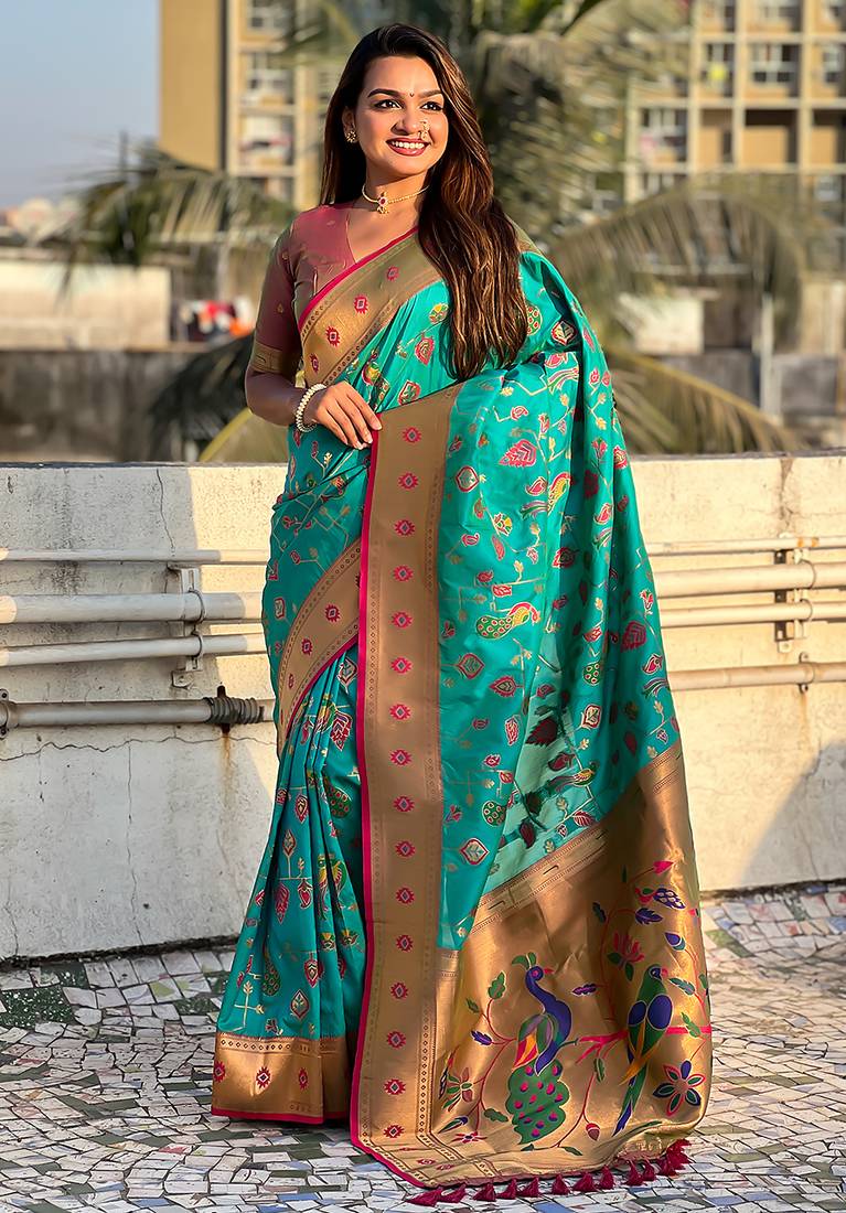 | Product Name | Sea Green Woven Self Design Pure Silk Paithani Saree With Blouse | |