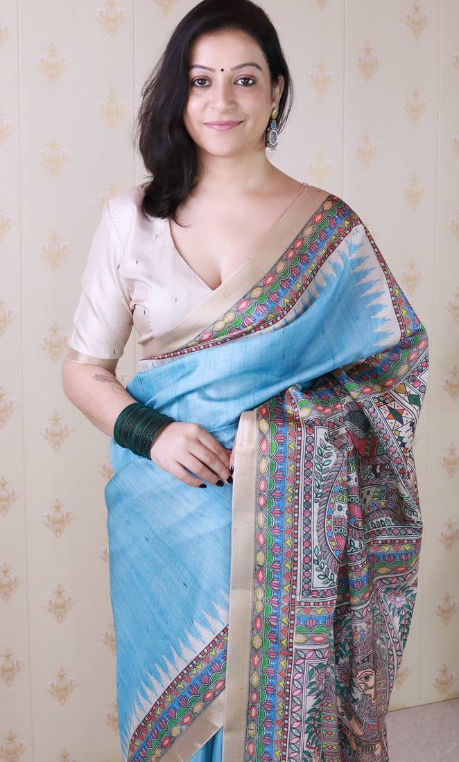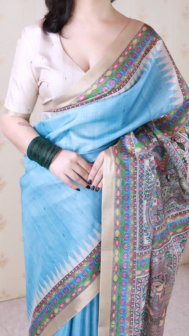 | • | Saree | : | Color- Sky Blue / Fabric- Tussar Silk |