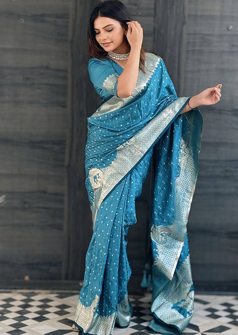 | Product Name | Sky Blue Woven Self Design Antique Silk Banarasi Saree With Blouse | |