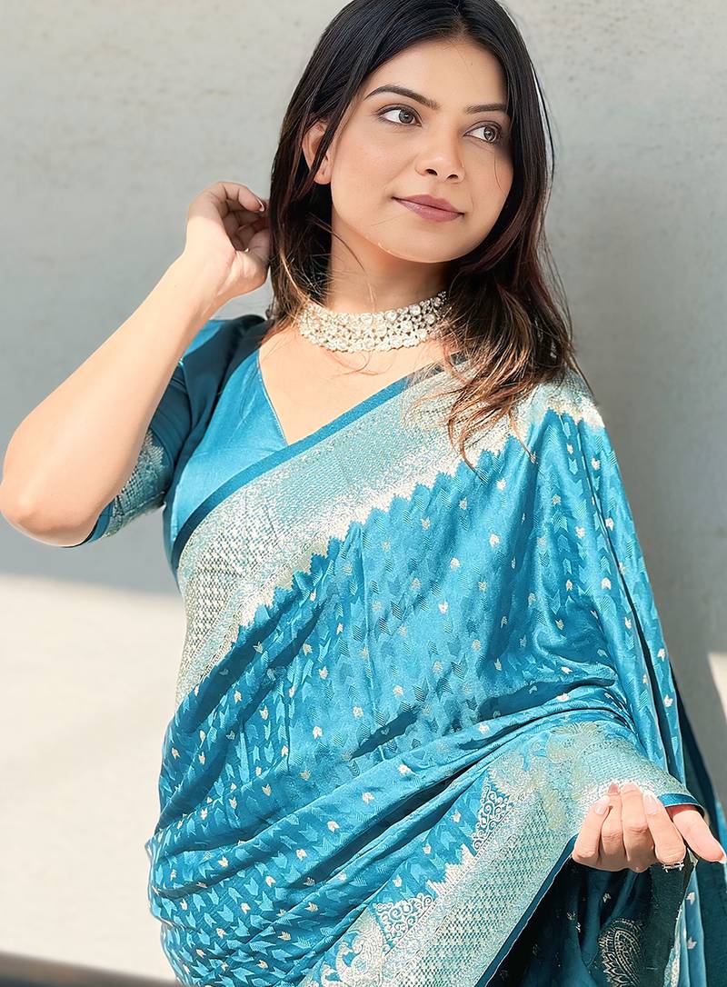 | • | Saree | : | Color- Sky Blue / Fabric- Banarasi Silk |
