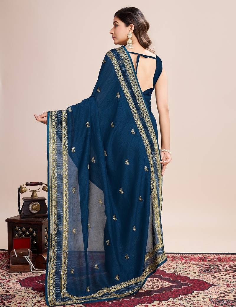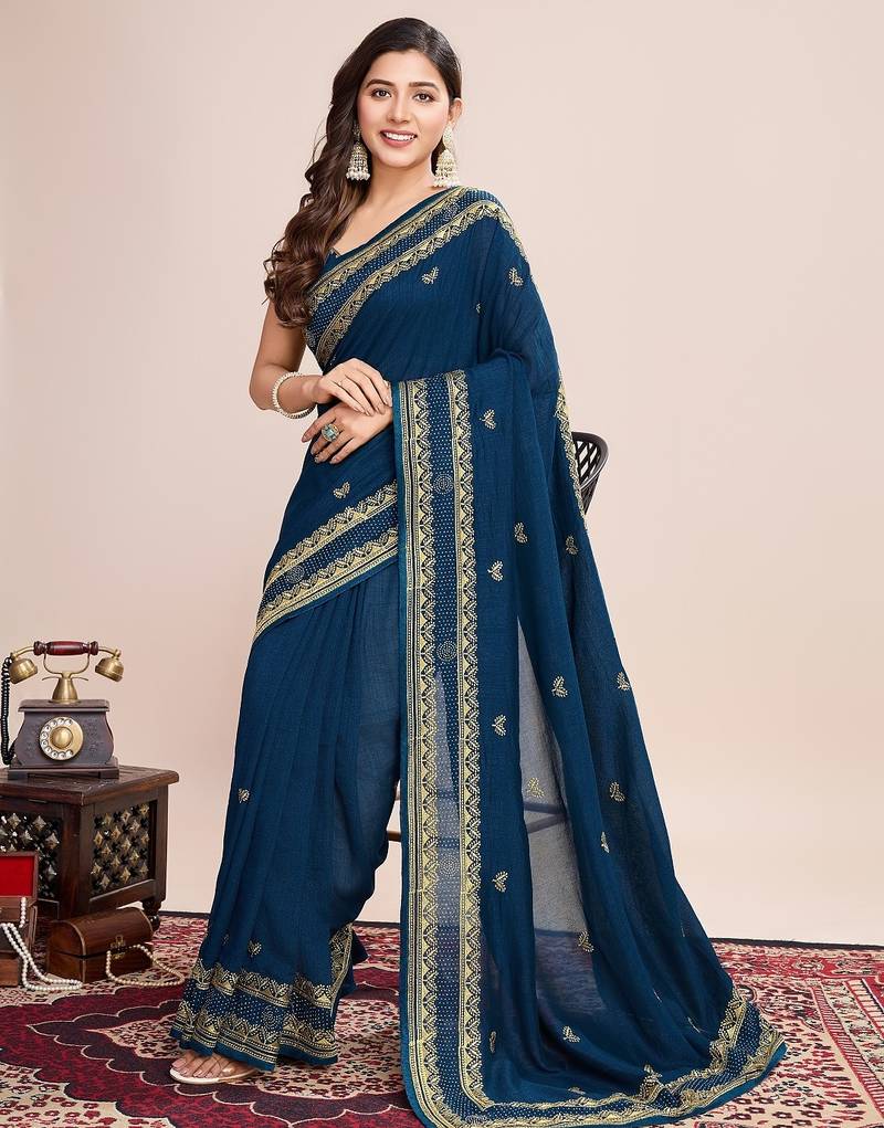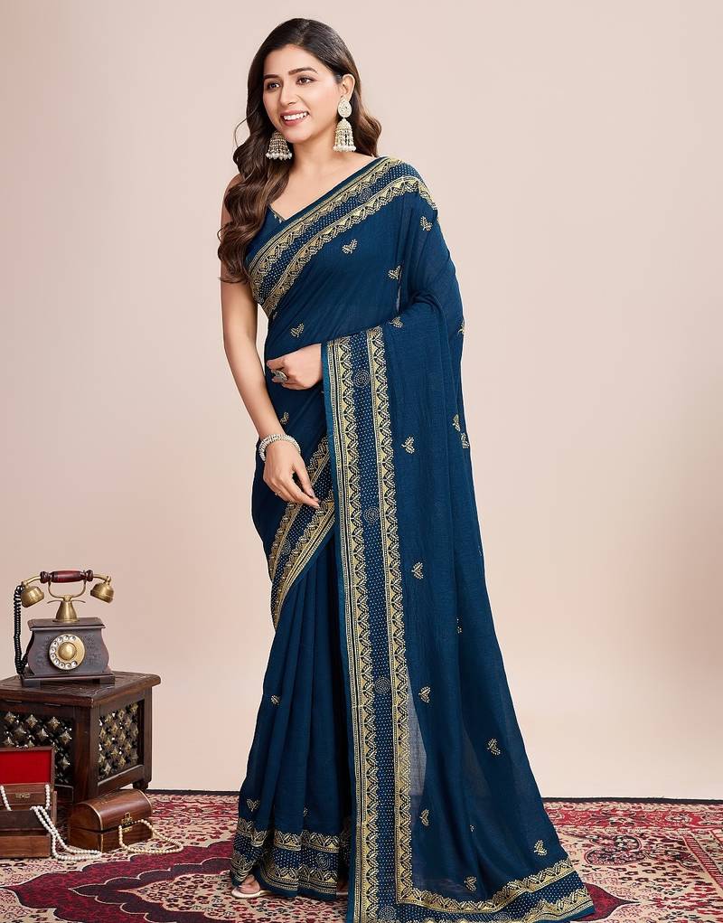 | Product Name | Teal Blue Embroidered Silk Blend Bollywood Saree With Blouse | |