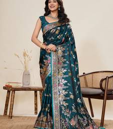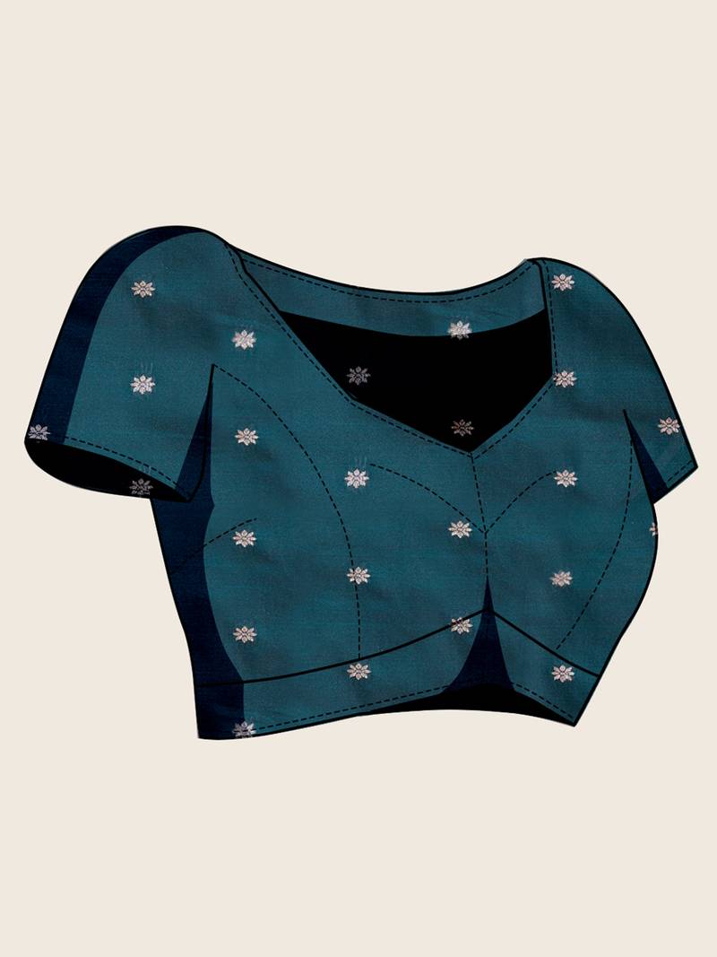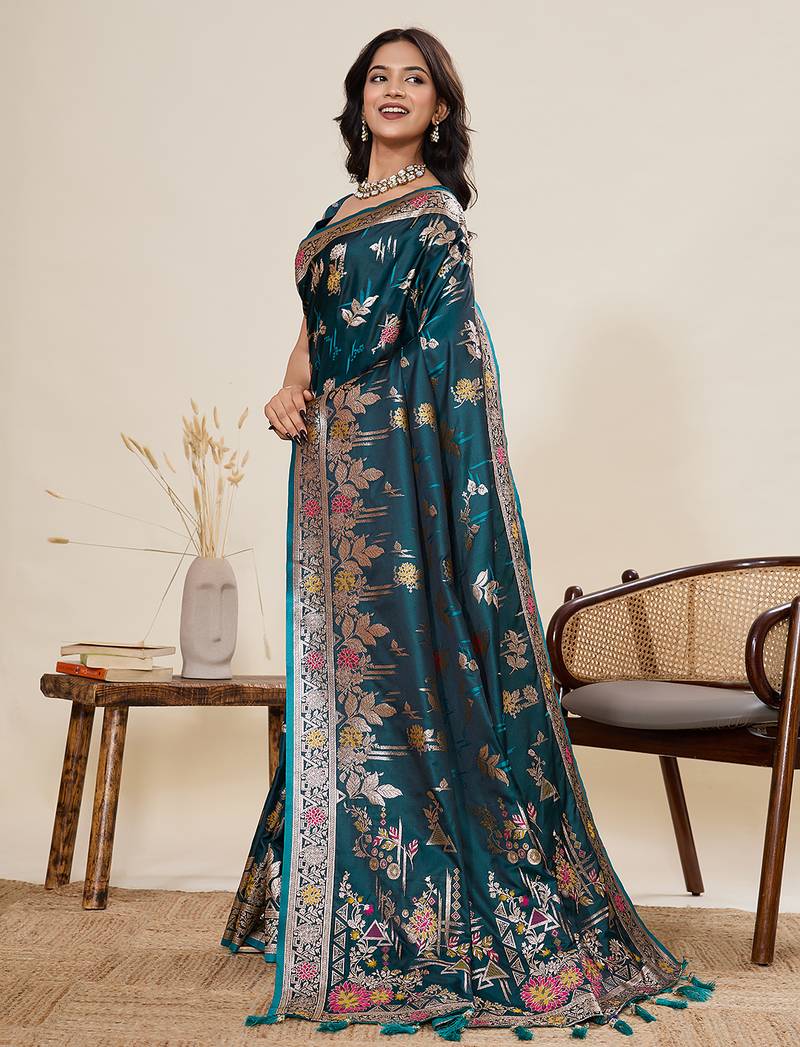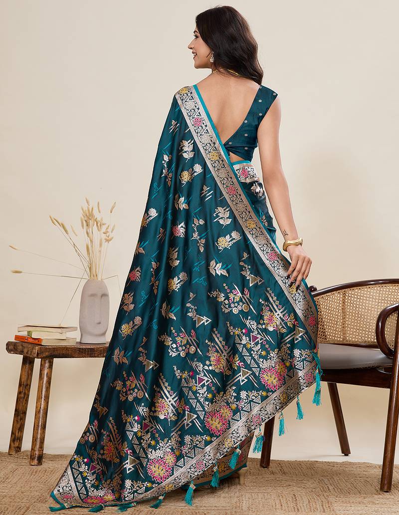| Product Name | Teal Blue Floral Print Satin Paithani Saree With Blouse | |