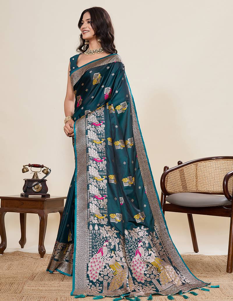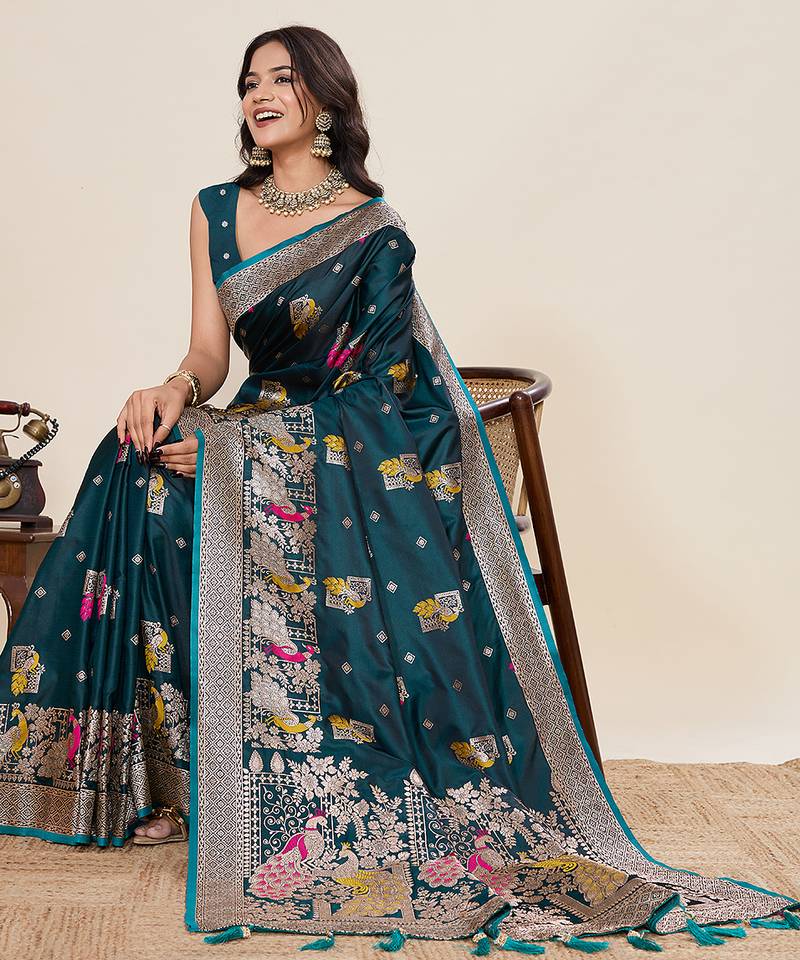 | Product Name | Teal Blue Floral Print Woven Satin Paithani Saree With Blouse | |