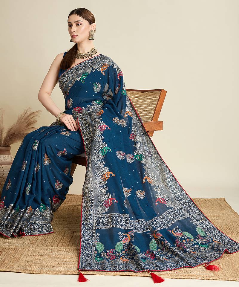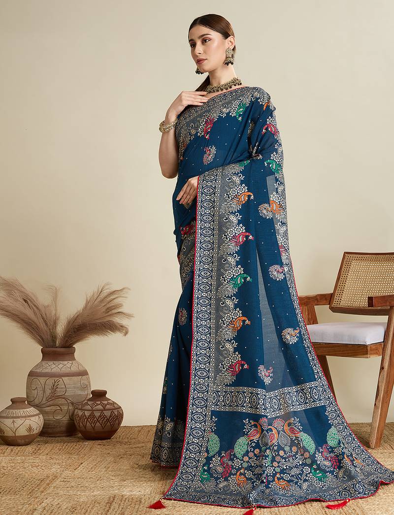 | Product Name | Teal Blue Printed Floral Print Cotton Silk Bollywood Saree With Blouse | |