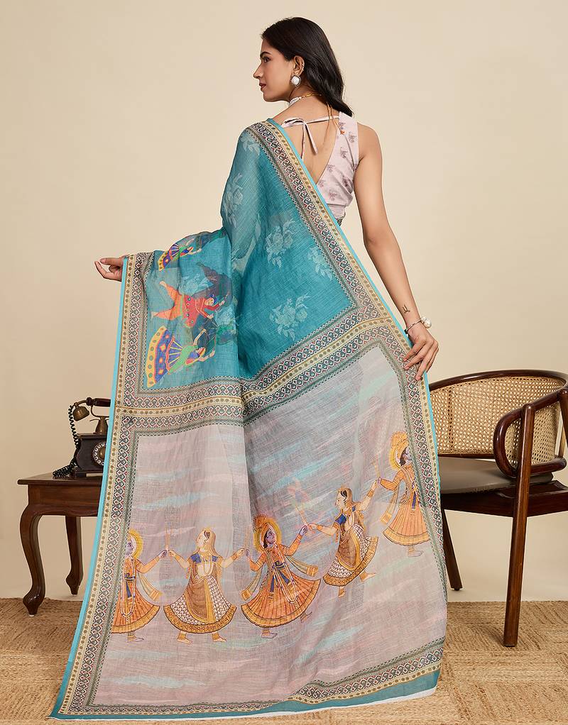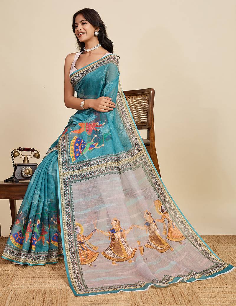 | Product Name | Teal Blue Printed Linan Kalamkari Saree With Blouse | |