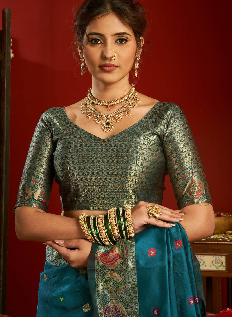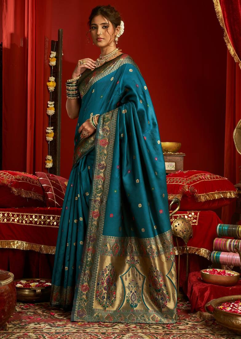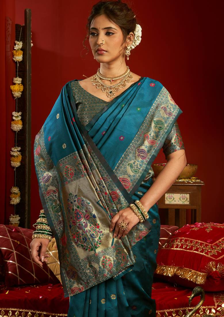 | Product Name | Teal Blue Woven Paithani Silk Saree With Blouse | |