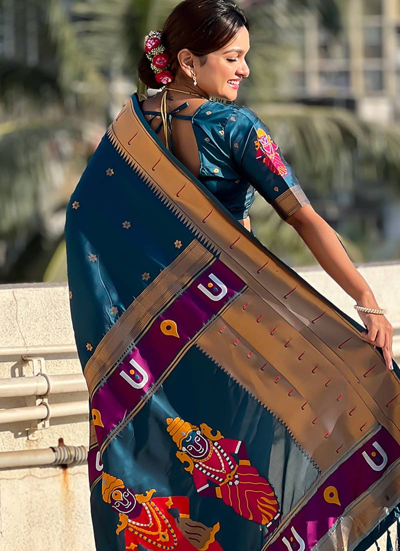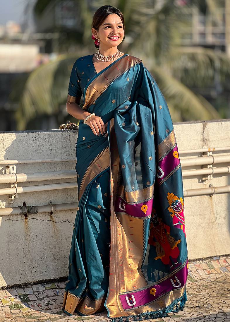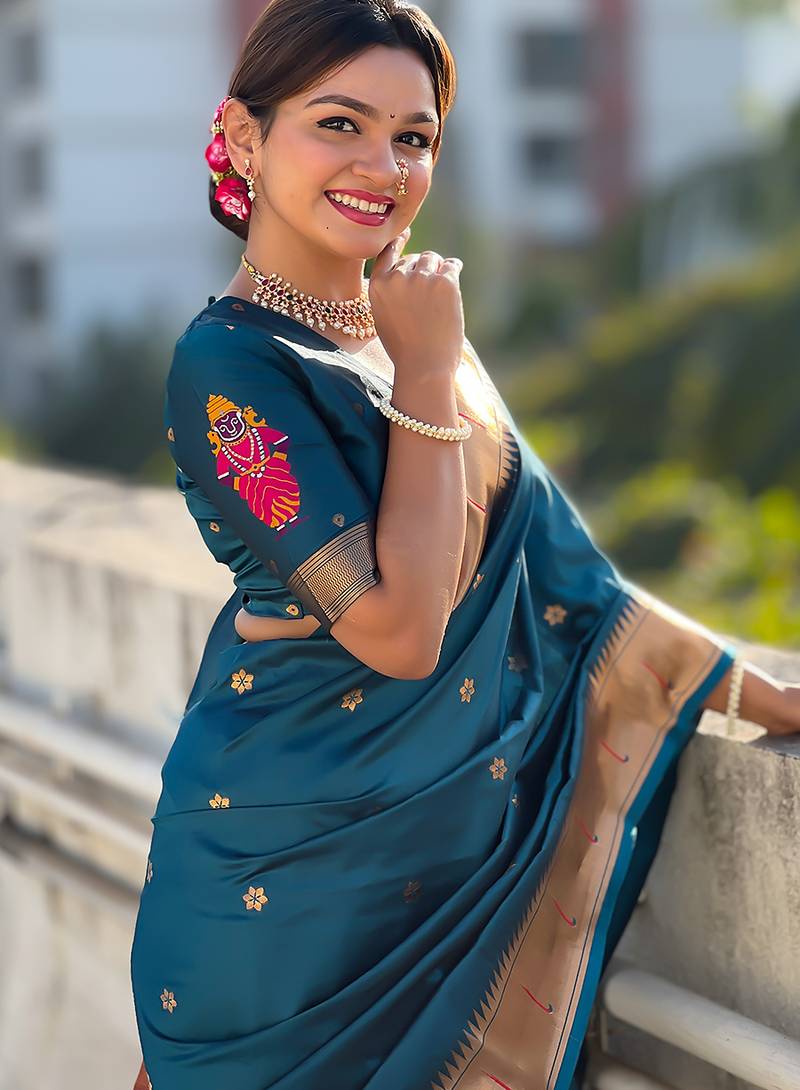 | Product Name | Teal Blue Woven Self Design Pure Silk Paithani Saree With Blouse | |