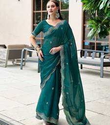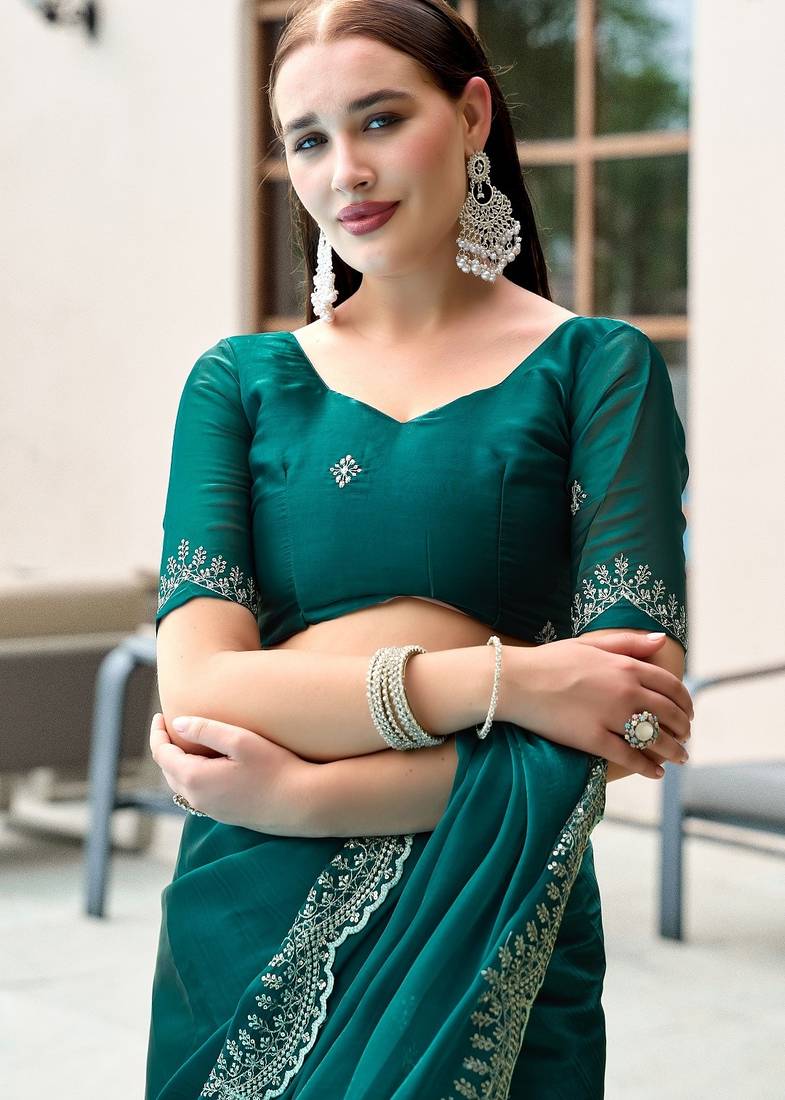 | Product Name | Teal Green Embroidered Embellished Shimmer Chiffon Bollywood Saree With Blouse | |